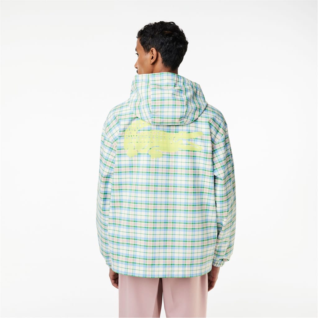 Introducing the Lacoste rain jacket, designed for those who demand both style and functionality. This jacket features a relaxed fit with a plaid pattern and a hooded neckline. The water-repellent material ensures you stay dry, while the zipper closure provides convenience. Finished with a logo embellishment, this jacket combines practical elements with a touch of iconic branding. -
