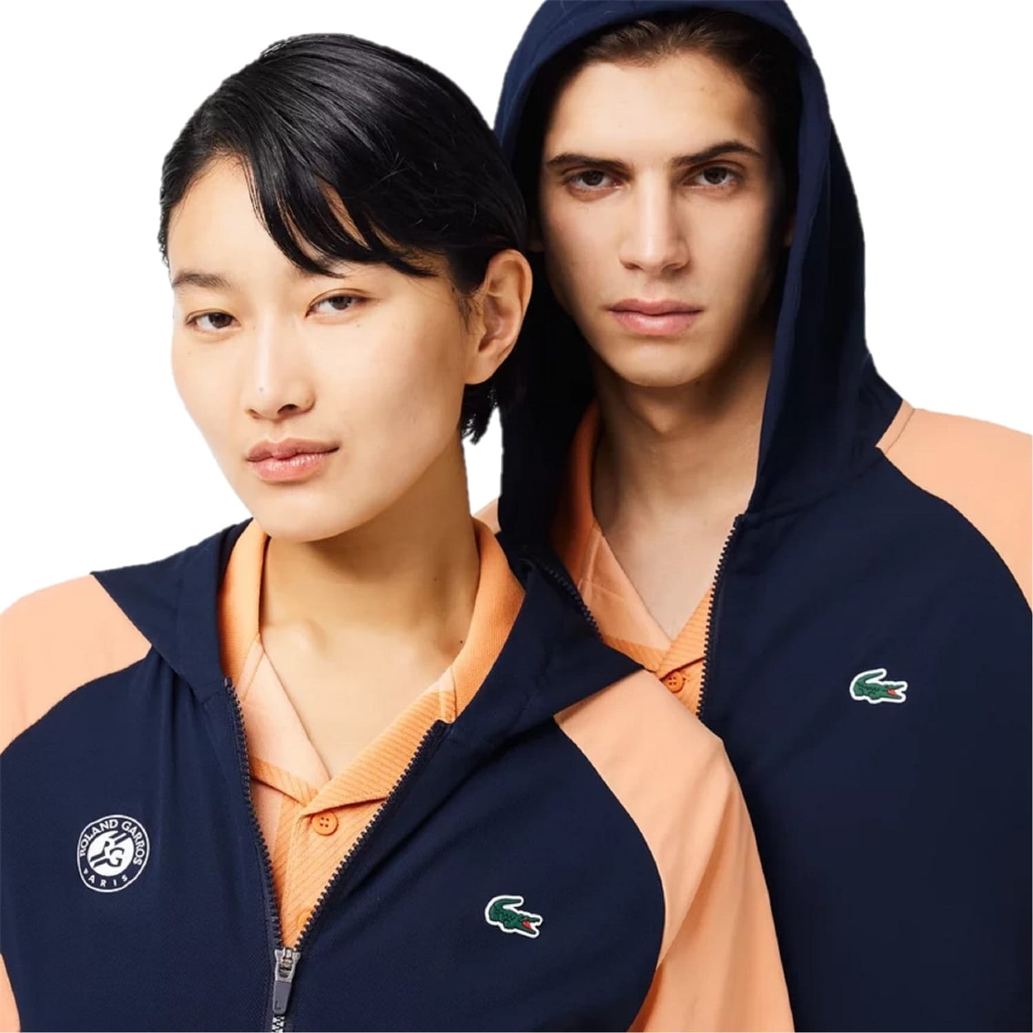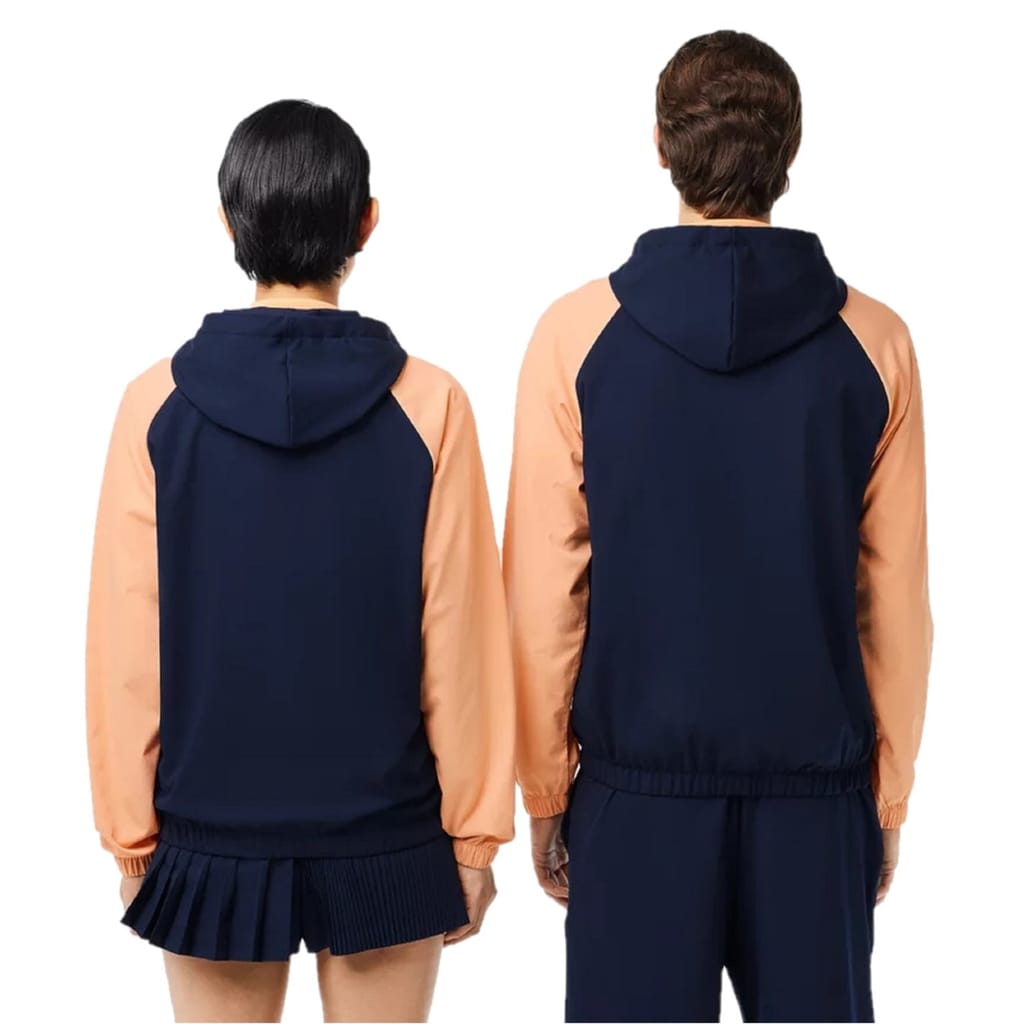This Lacoste rain jacket is designed with a hooded neckline and features a water-repellent finish. It has a regular fit with a solid pattern, complemented by a zipper closure. The jacket includes an elasticated cuff and hem for added comfort. A logo embellishment adds a touch of brand identity. -