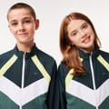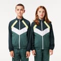 This Lacoste top features a stylish zip neck and a fitted collar, perfect for a casual look. The long raglan sleeves with elasticated cuffs ensure comfort and ease of movement. Designed in a regular fit, it showcases a distinctive color block pattern and a subtle logo embellishment. Suitable for all seasons, this top is a versatile addition to any wardrobe. -
