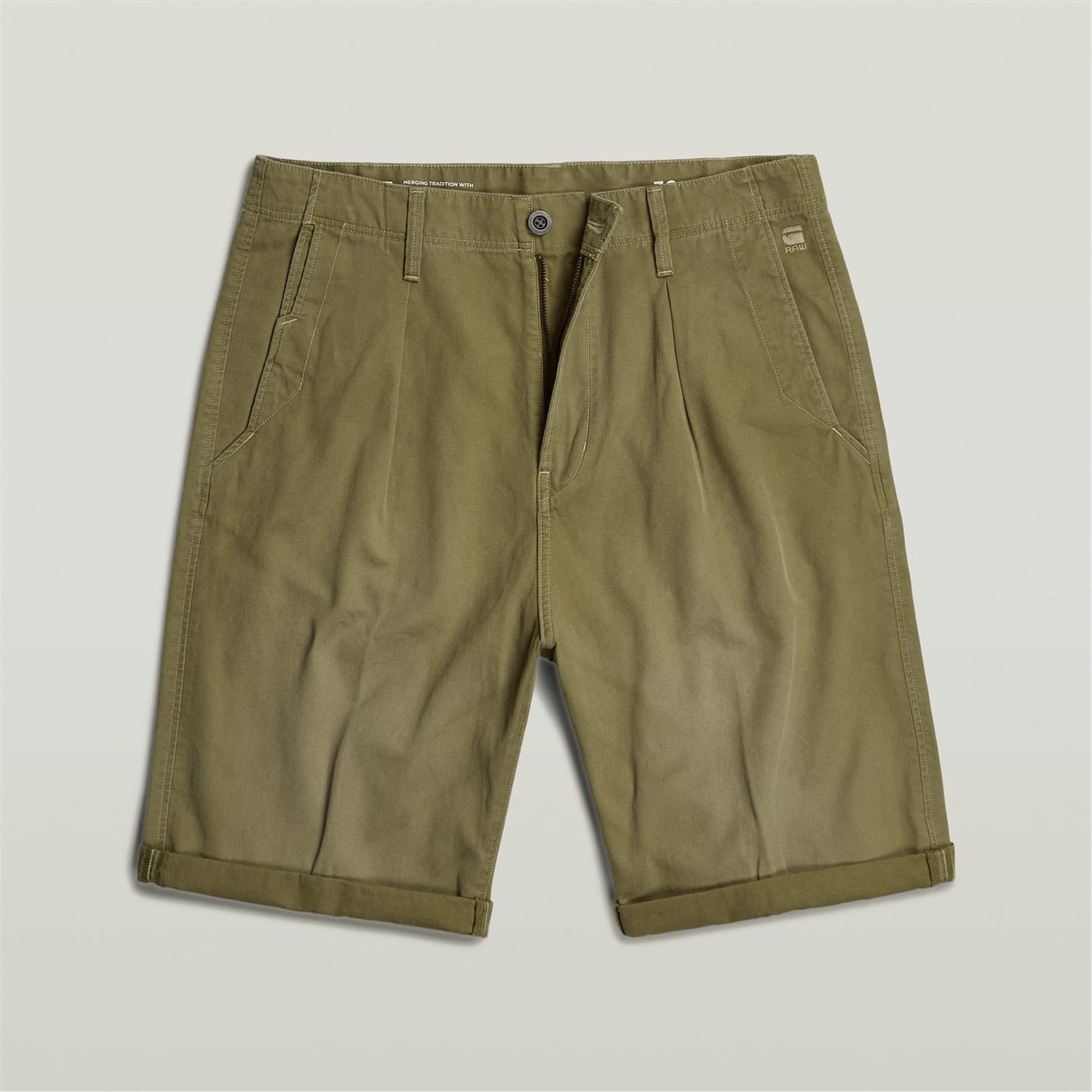 Chino shorts Pleated have a relaxed fit. The inset pockets are cut in shape and offer an integrated coin pocket. Choose for a turn-up leg to complete the look.