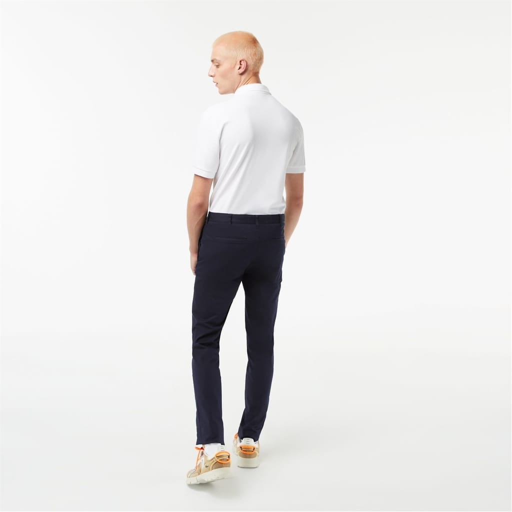 Lacoste chinos offer a sleek and modern look with their slim fit design. Featuring a zip fly and button closure, these pants are both stylish and functional. The addition of pockets provides practicality, making them a versatile choice for any wardrobe. -