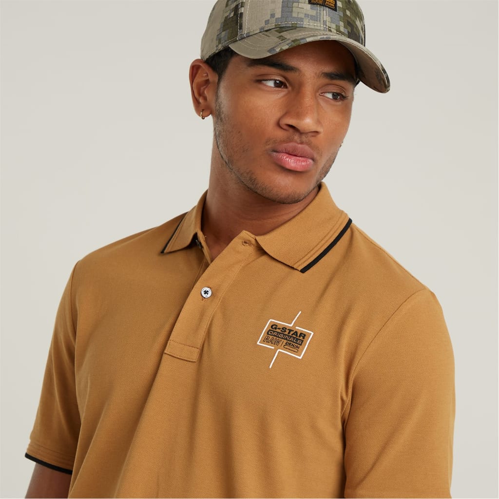 Polo Chest logo Striped offers a straight fit with side slits. The ribbed collar and sleeve hems show a striped pattern.