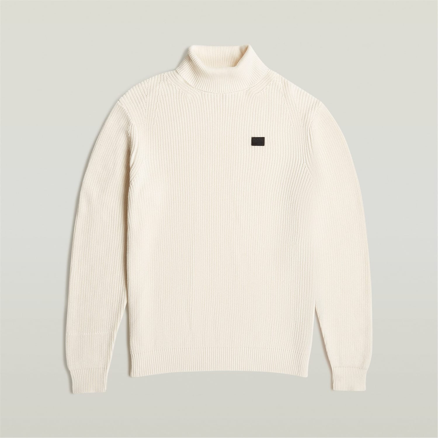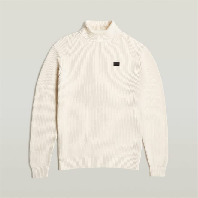 Discover the G-Star top, featuring a turtle neck and long sleeves. This knit design offers a regular fit with ribbed cuffs, adding a touch of texture. The ribbed pattern enhances its appeal, while the logo embellishment provides a subtle brand statement. Perfect for those seeking a blend of style and comfort. -
