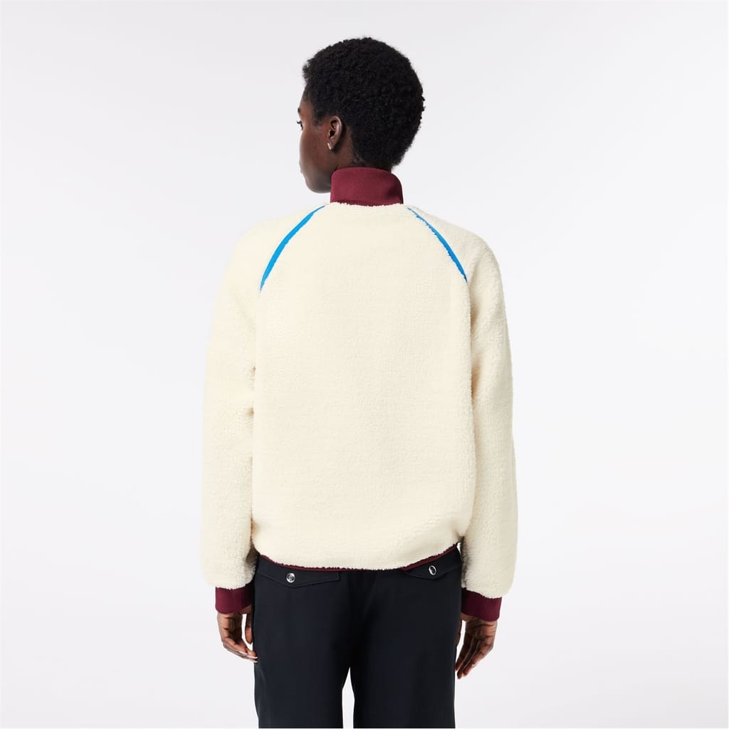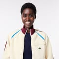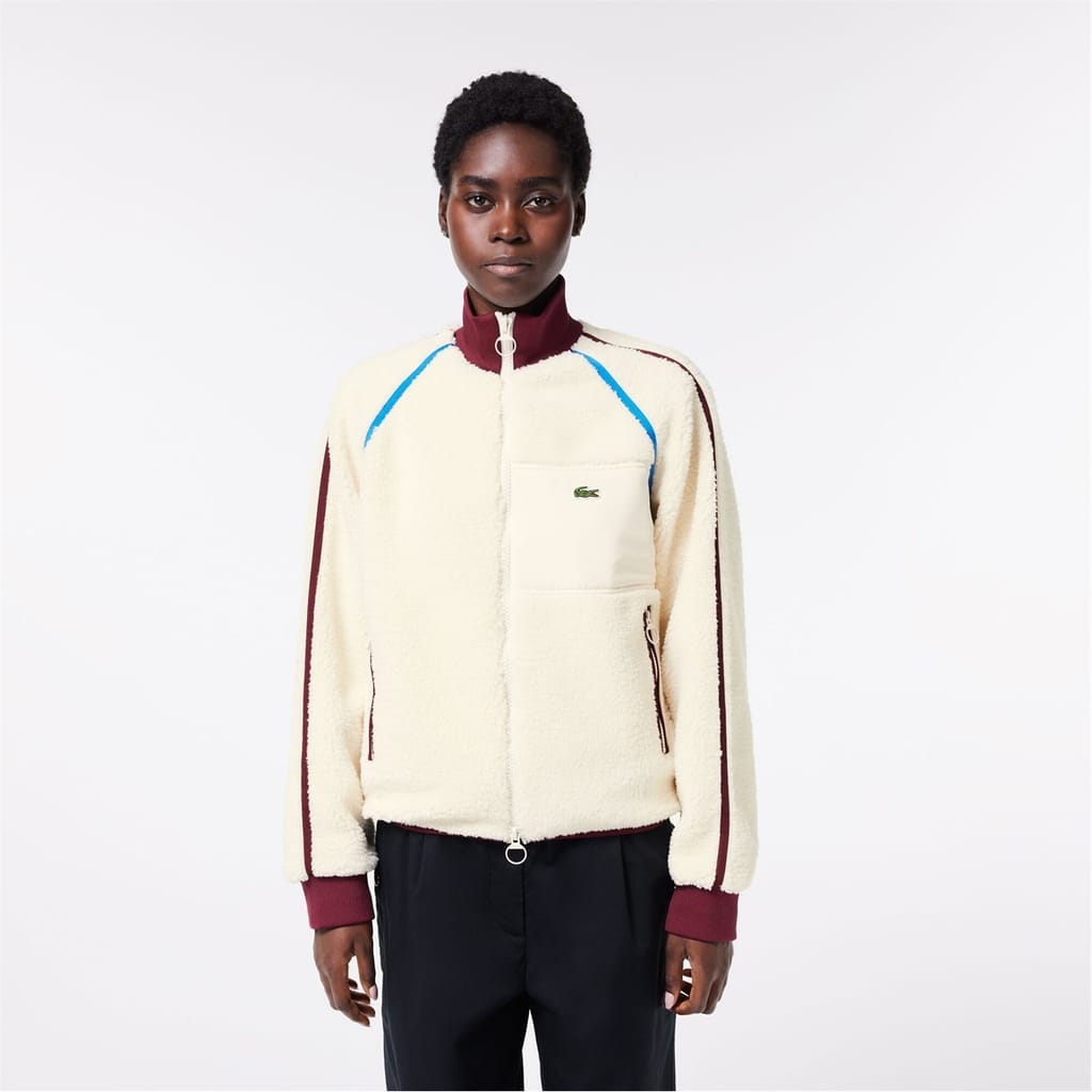This Lacoste rain jacket is an essential for wet weather. Designed with a high collar to keep you protected, it features a zipper closure and a ribbed top cuff. Its water-repellent material ensures you stay dry, while the relaxed fit and solid pattern offer comfort and style. The jacket is accented with a logo and a chest pocket for added functionality. -