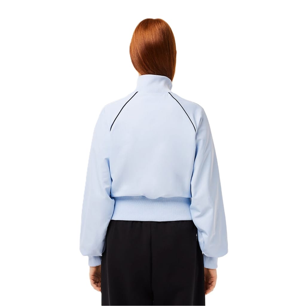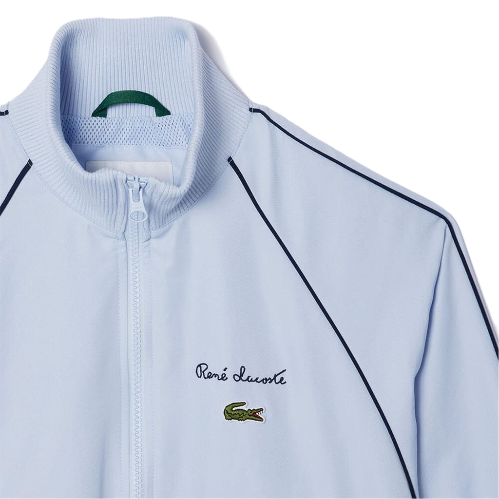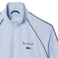 This Lacoste rain jacket features a mock neck and a relaxed fit, perfect for wet weather. The jacket is water-repellent and includes a zipper and snap button closure for added protection. It has a ribbed collar, cuffs, and hemline, ensuring a snug fit. The solid pattern is complemented by an embroidered logo, adding a touch of brand identity. -