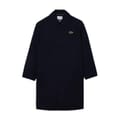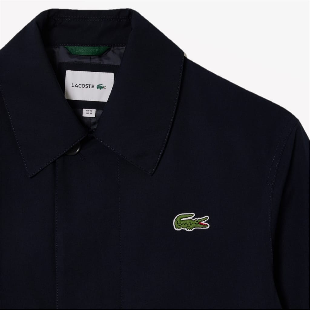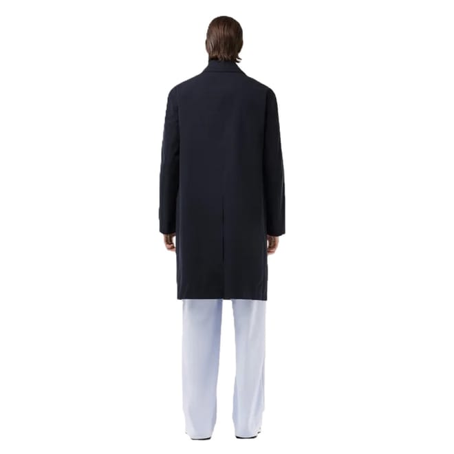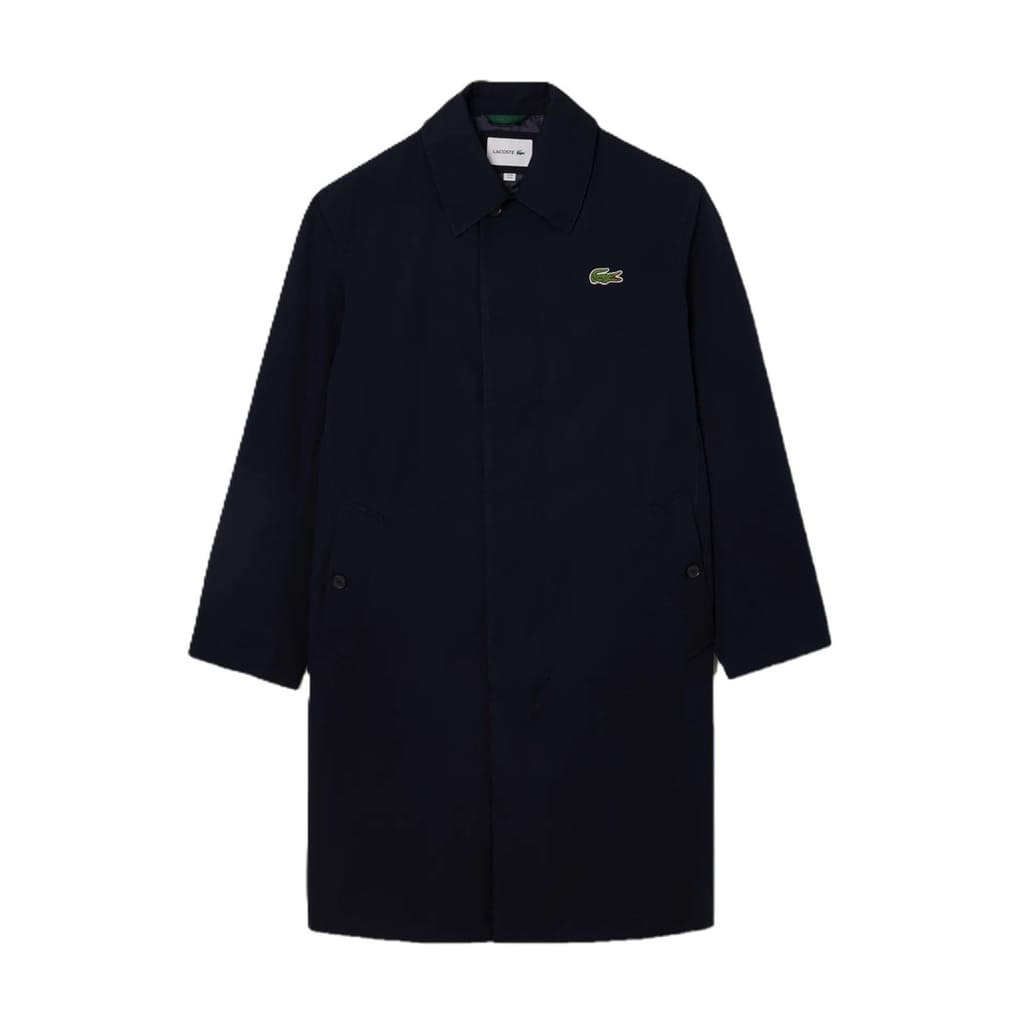 This Lacoste trench coat is a winter essential, featuring a regular fit and a point collar. Crafted from twill, it offers showerproof and water-repellent properties. The coat has a solid pattern with a straight hem and snap button closure. Embellished with the iconic crocodile logo, it combines functionality with a touch of brand identity. -