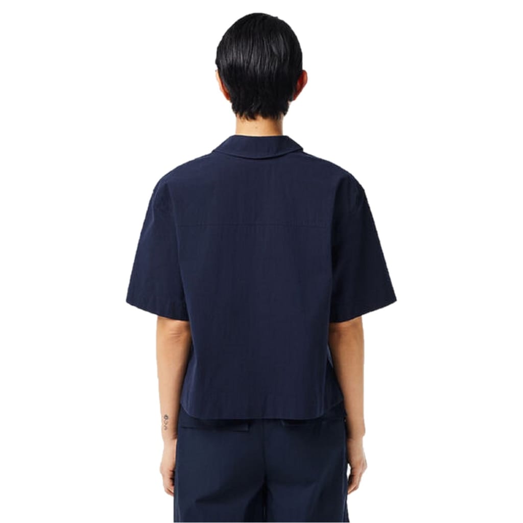 This Lacoste top is a casual essential, featuring a solid pattern and a relaxed fit. It comes with a shirt collar and short sleeves, offering a comfortable and stylish look. The button closure adds a classic touch, while the logo embellishment subtly showcases the brand's identity. -