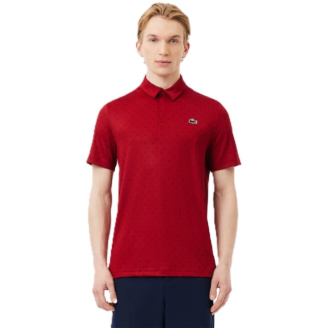 This Lacoste top is a versatile addition to your wardrobe, suitable for both semi-formal and casual occasions. Featuring a polo collar and short sleeves, it offers a regular fit for comfort. The polka dot pattern adds a touch of style, while the logo embellishment highlights the brand's signature touch. Designed with performance attributes, this top is both functional and fashionable. -