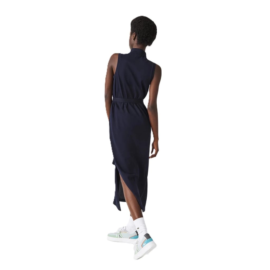 This Lacoste maxi dress combines the classic appeal of a polo collar with a collared neck, offering a sophisticated t-shirt style. The solid pattern and regular fit ensure a timeless look, while the button closure adds a touch of practicality. Finished with a straight hem and the iconic logo embellishment, this dress is a perfect blend of elegance and brand identity. -