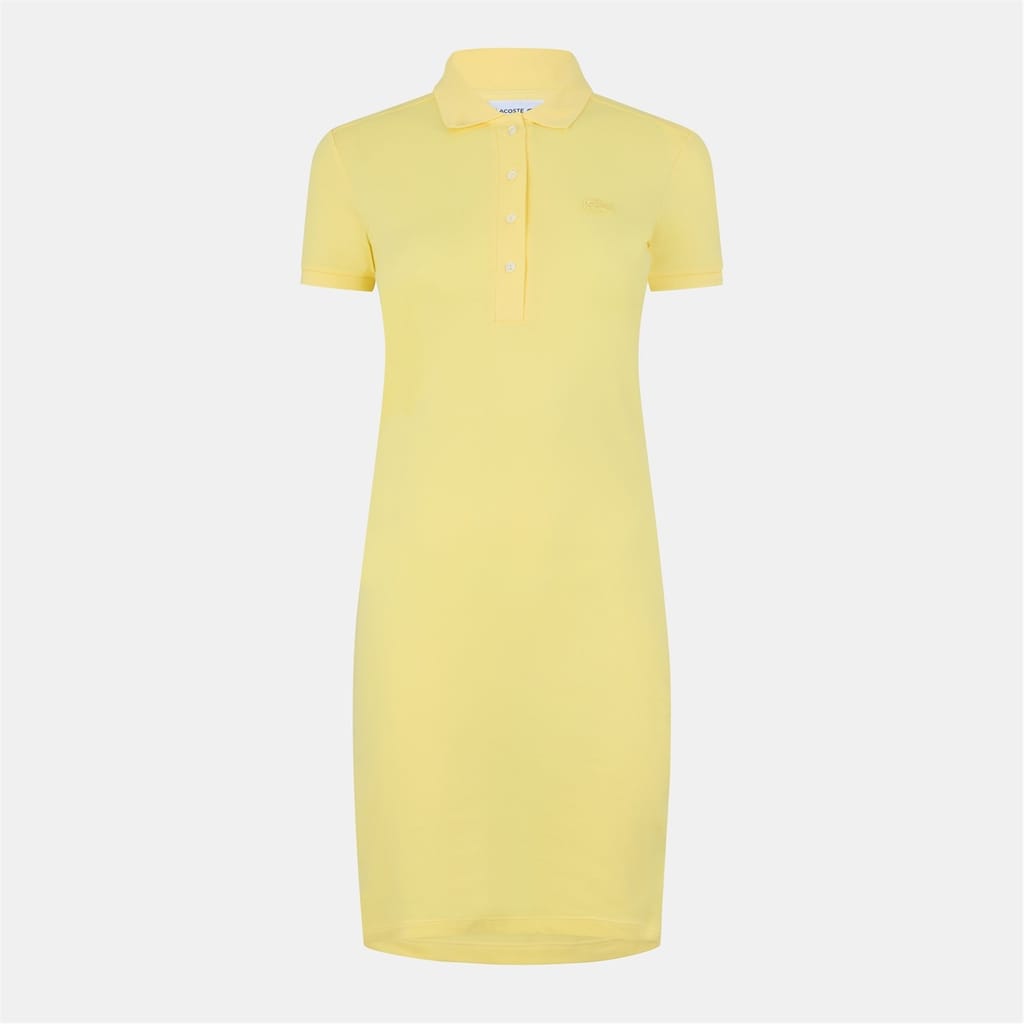 This Lacoste midi dress combines the classic appeal of a polo collar with a collared neck and button closure. Crafted in a solid pattern, it features a straight hem and short sleeves, offering a regular fit. The dress is adorned with a subtle logo, adding a touch of brand identity to its t-shirt style. -