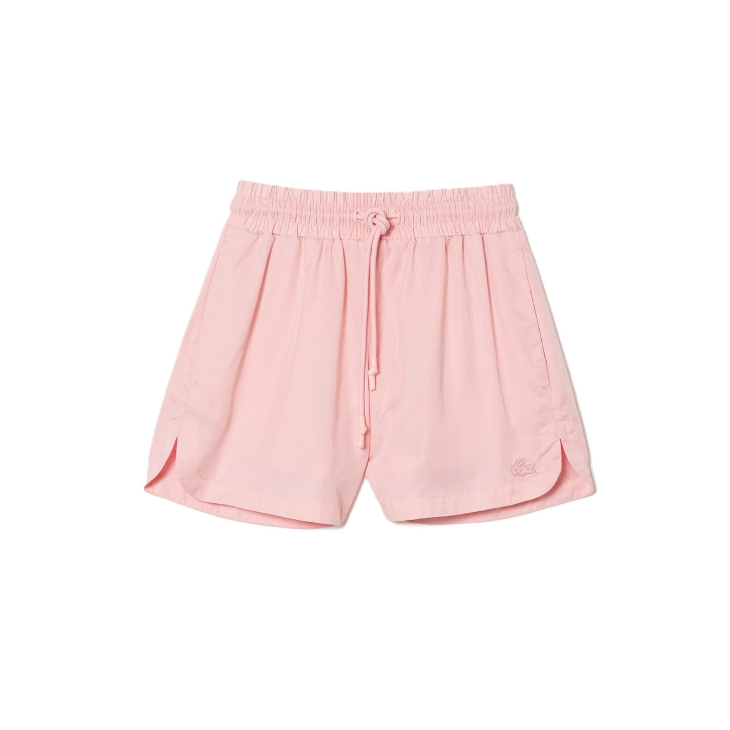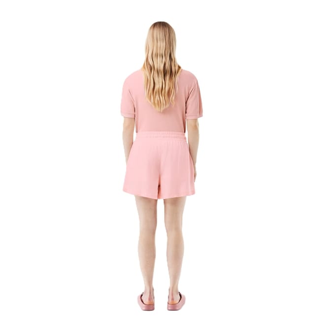 Lacoste solid woven sweat shorts feature a drawstring closure and an elasticated waistband for a comfortable fit. Part of the casual collection, these shorts are adorned with a subtle logo embellishment, adding a touch of brand identity to the design. -