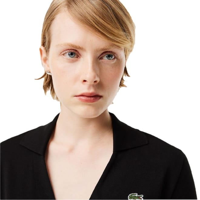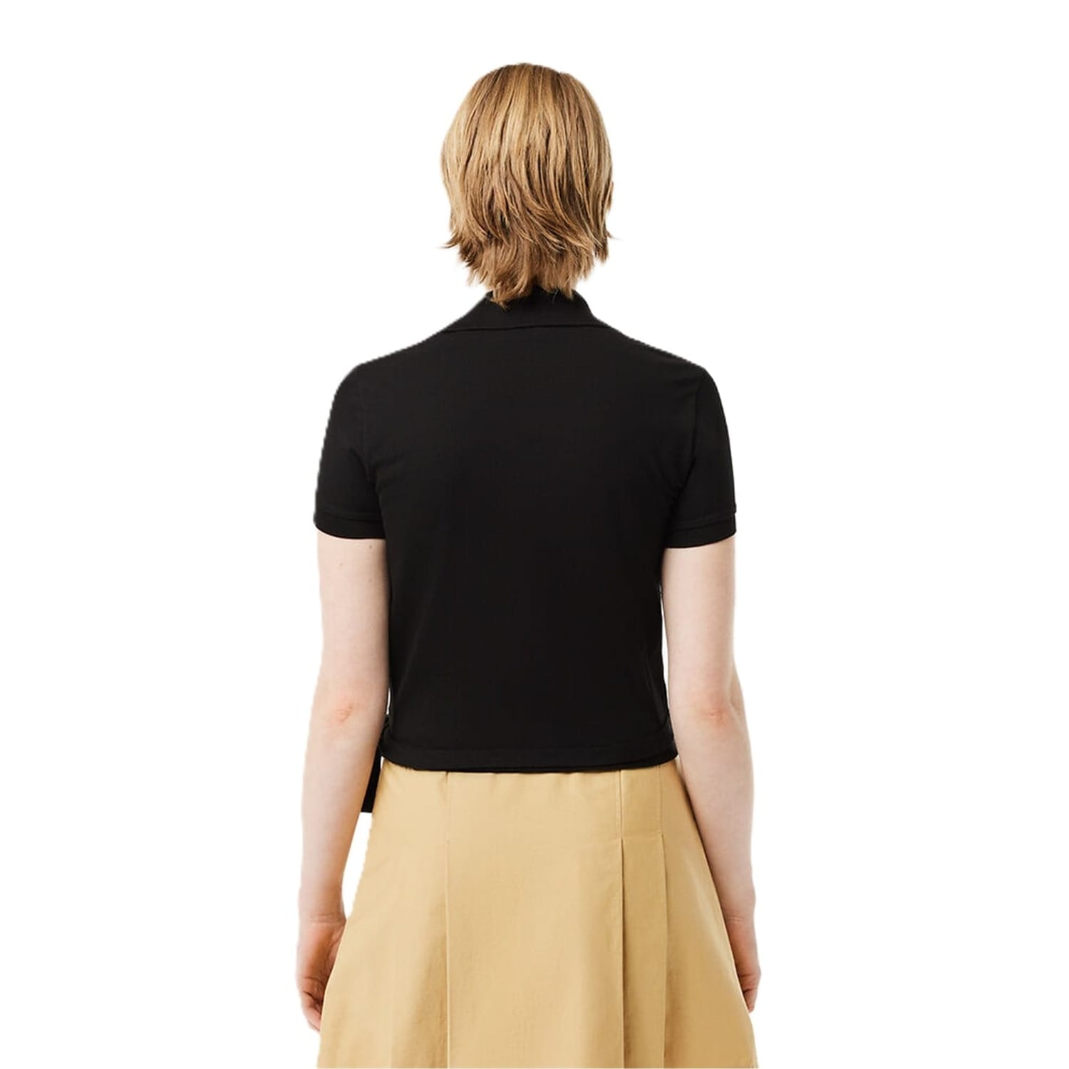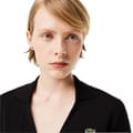 This Lacoste top from the semi-formal collection features a polo collar and short sleeves. Designed in a solid pattern, it offers a slim fit and is adorned with a logo embellishment. The tie closure adds a unique touch to this elegant piece. -