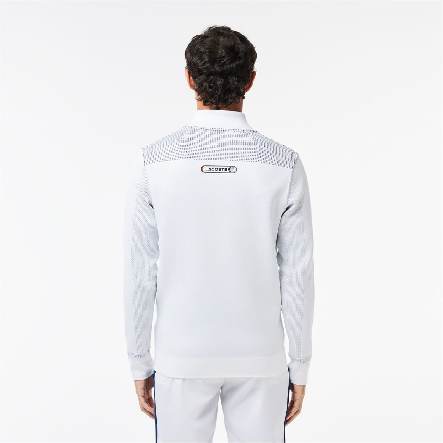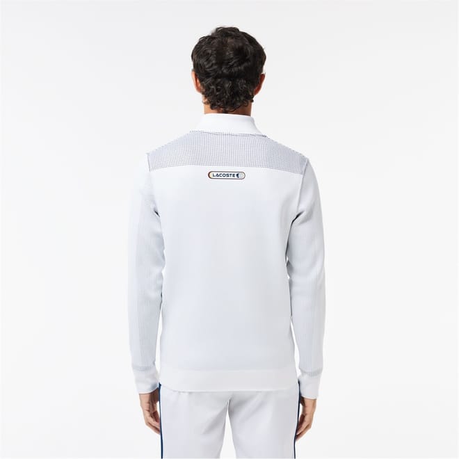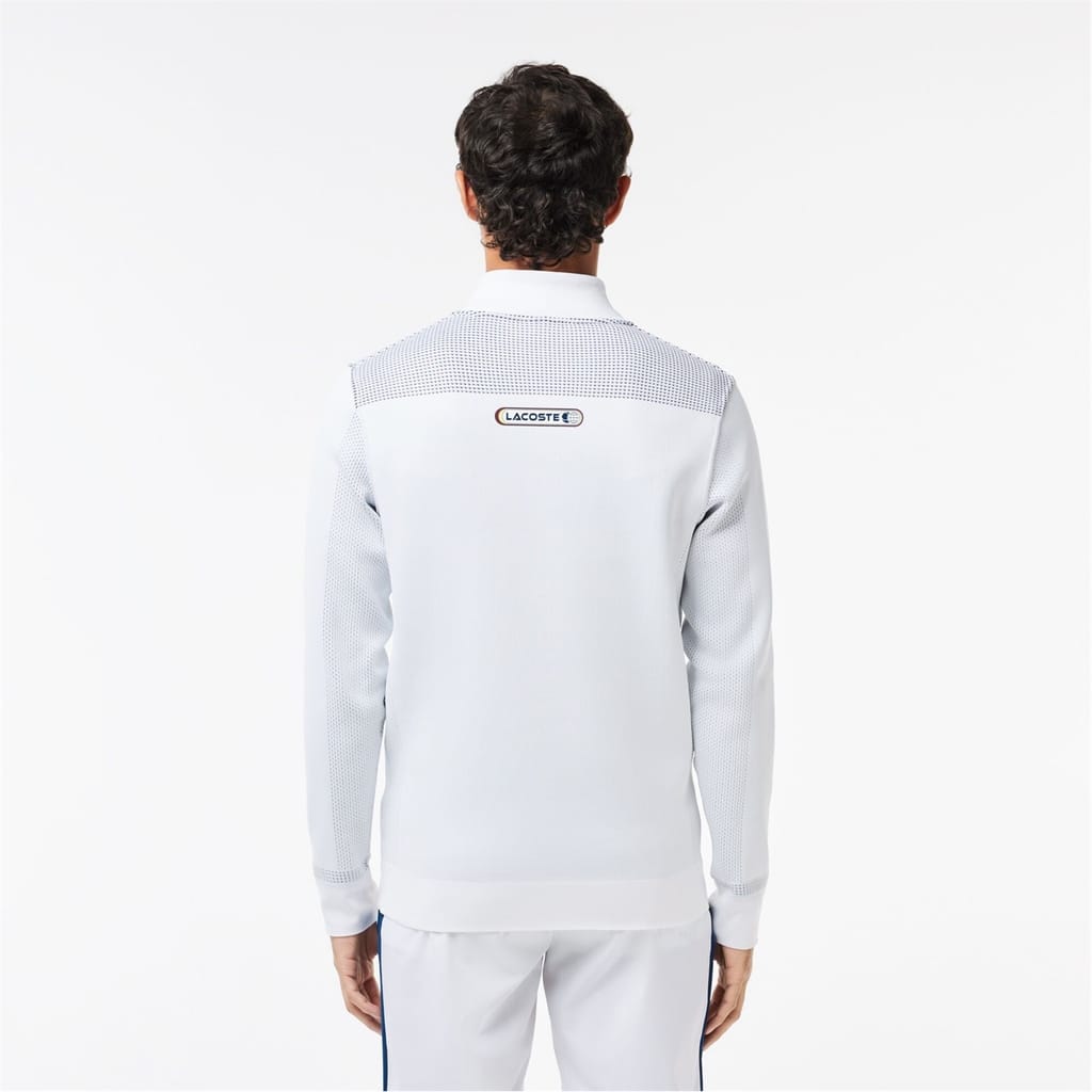 This Lacoste top features a zip neck and long sleeves, offering a regular fit. The solid pattern is complemented by a ribbed collar and ribbed cuffs, adding a touch of casual elegance. A subtle logo embellishment completes the design, making it a versatile addition to any wardrobe. -
