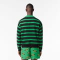 This Lacoste top features a relaxed fit with long sleeves and a ribbed cuff. The horizontal stripe pattern adds a classic touch, while the ribbed collar enhances comfort. Embellished with a logo patch, this top combines style and subtle branding for a versatile wardrobe addition. -