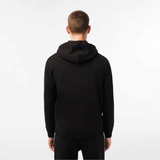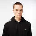 This Lacoste top from the outerwear collection is designed for casual wear. It features a hooded neck and a zipper closure, offering practicality and style. The long sleeves with ribbed cuffs ensure comfort, while the regular fit provides a classic silhouette. The solid pattern is complemented by a subtle logo embellishment, making it a versatile addition to your wardrobe. -