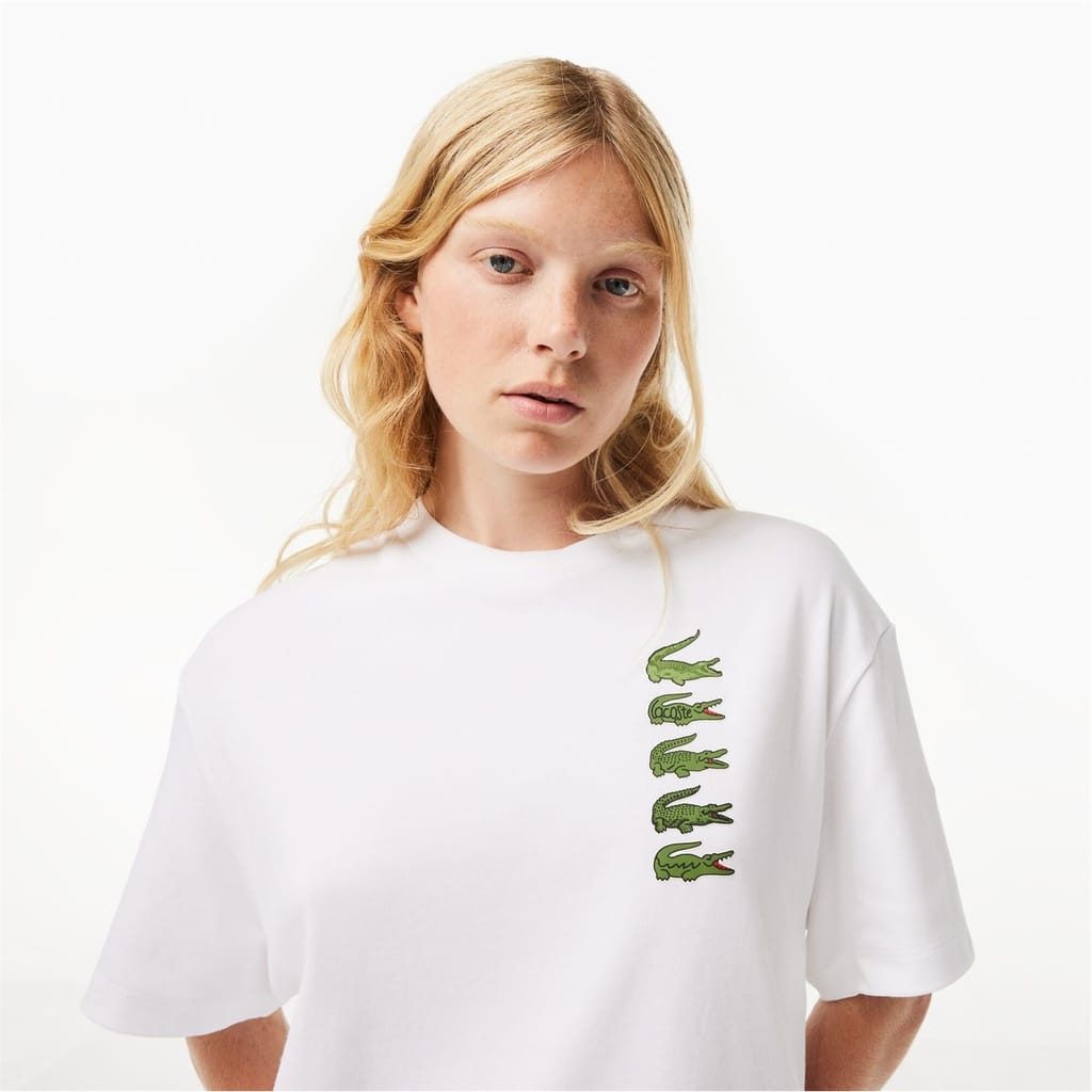 Add a sporty infused element to your casual collection with this Oversized Iconic Croc Print Cotton T-Shirt from Lacoste. Infused with the spirit of summer, this oversized T-Shirt, enhances your comfort with its breathable feel and soft touch. From weekend outings with friends to lounging through Saturday afternoons this T-shirt will become a versatile option in your weekend wardrobe.