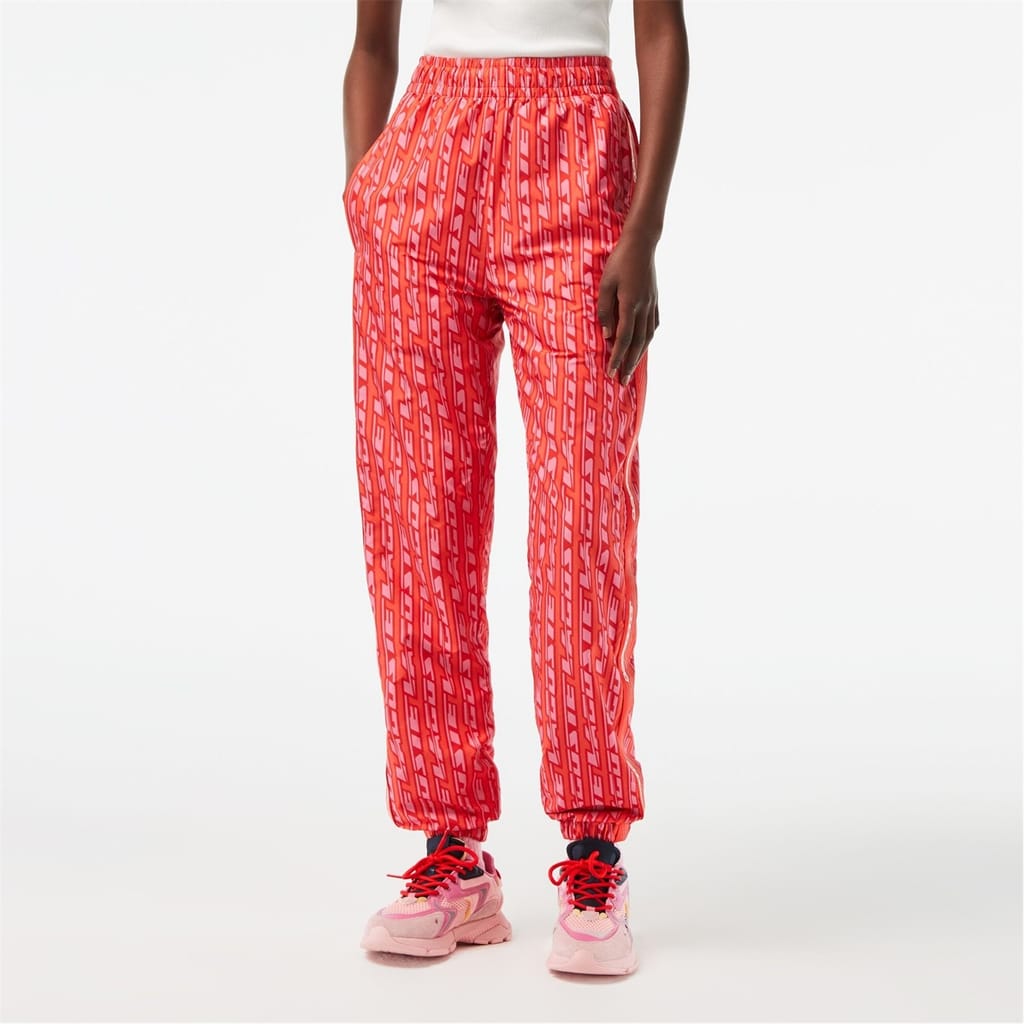 Lacoste track pants feature a drawstring closure and an elasticated waistband for comfort. The all-over logo pattern and lettering graphic add a distinctive touch, while the logo embellishment highlights the brand's identity. Perfect for casual collections, these pants offer a stylish yet relaxed fit. -