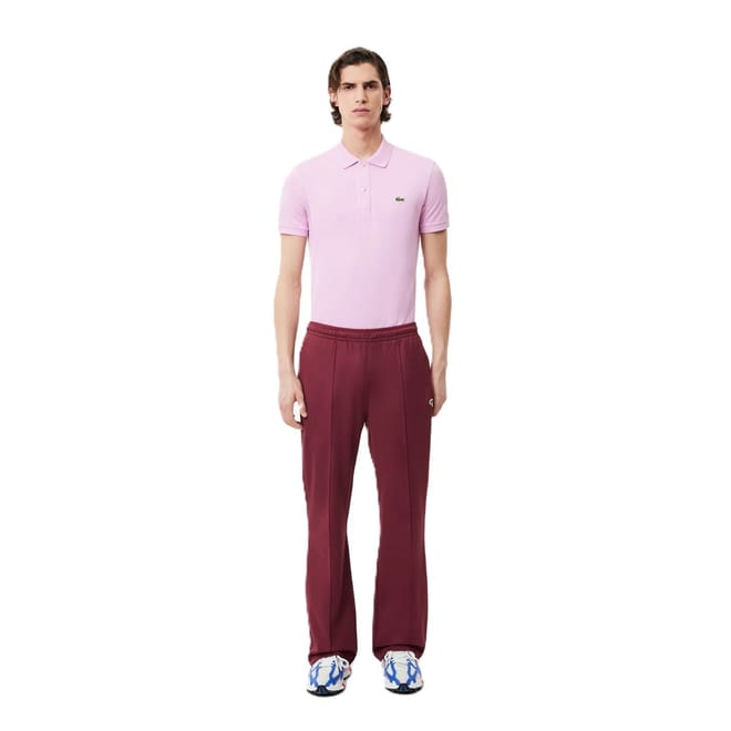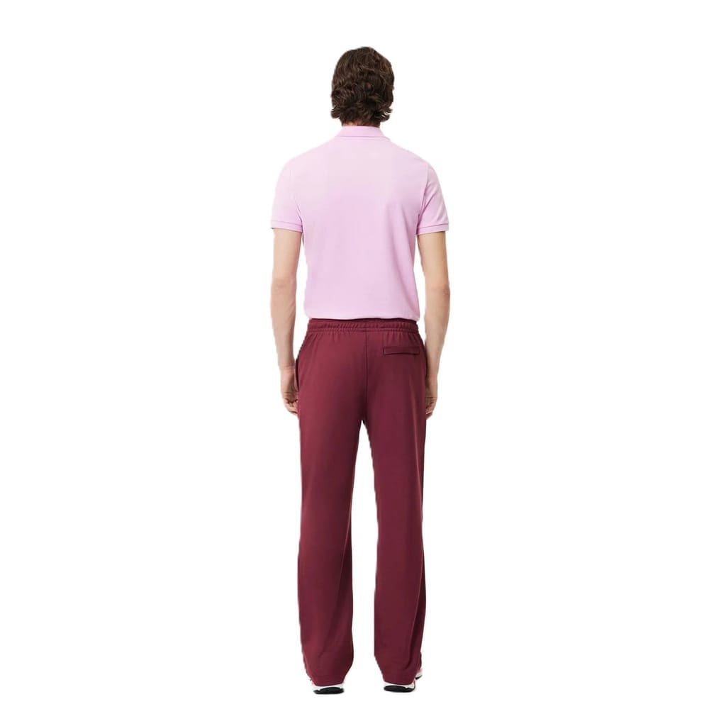 Lacoste track pants offer a regular fit with a woven texture, featuring a drawstring closure and an elasticated waistband for comfort. The design is completed with a subtle logo embellishment, making these track pants a stylish choice for casual wear. -
