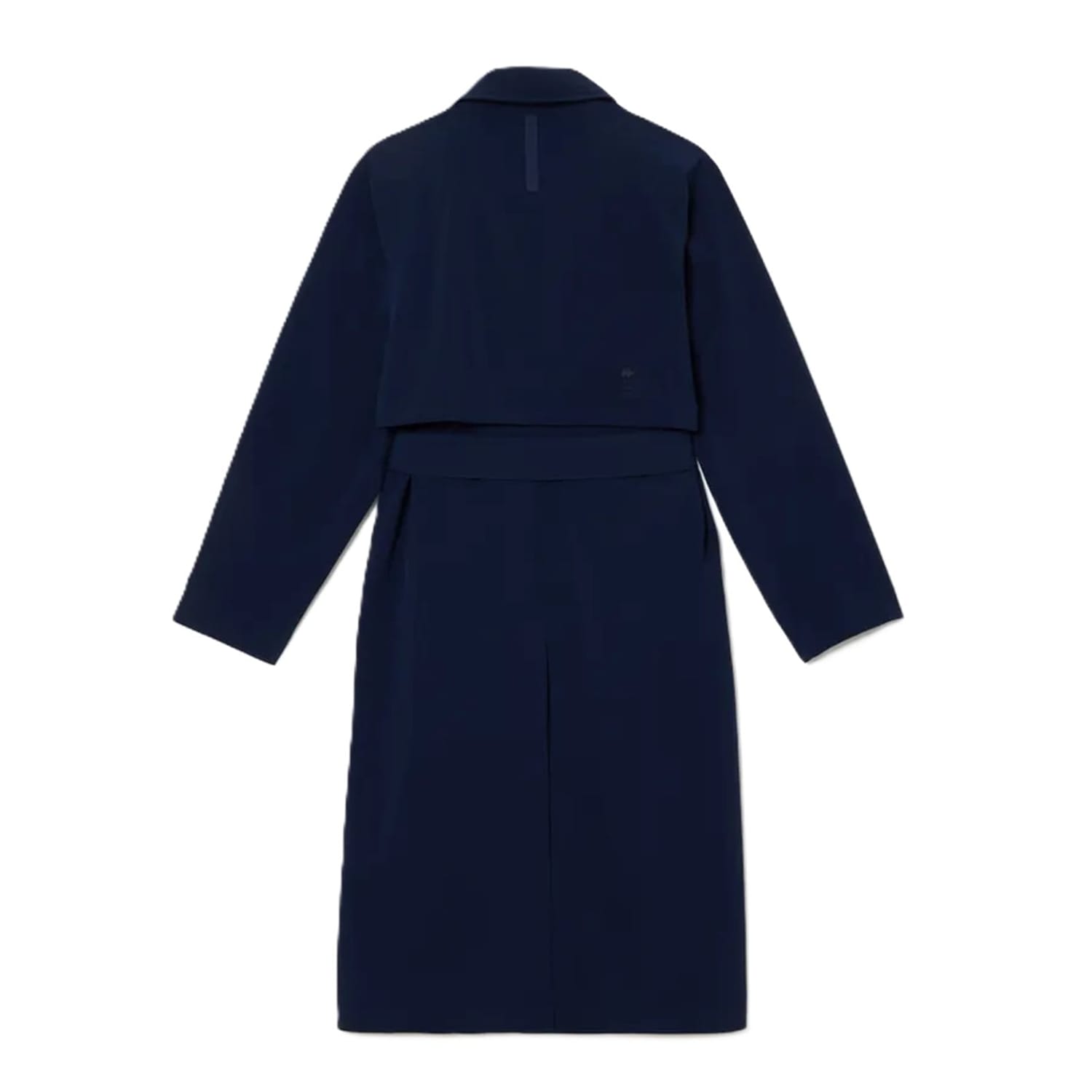 This Lacoste trench coat is perfect for winter. It features a shirt collar and a straight hem, offering a relaxed fit. The solid pattern adds a classic touch, while the button and belt closure ensure a secure fit. Practical pockets provide added functionality. -