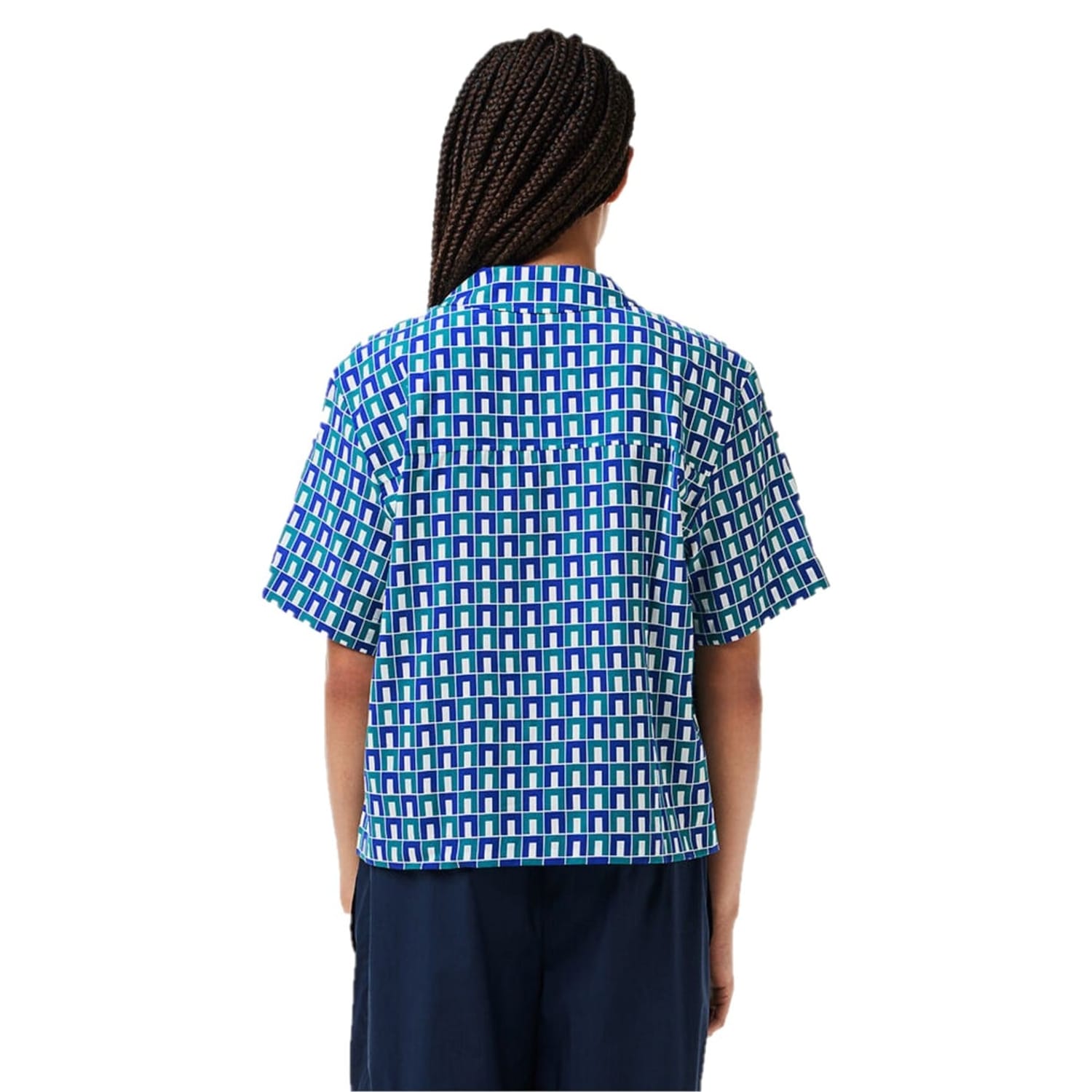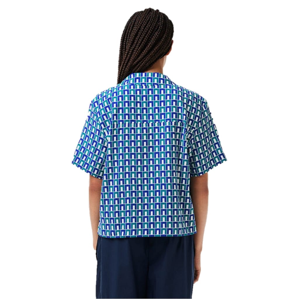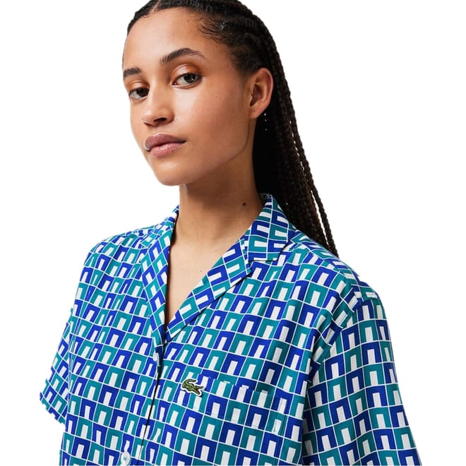 This Lacoste top features a regular fit with short sleeves and a shirt collar. The geometric pattern adds a stylish touch, while the button closure ensures a classic look. Embellished with a logo and a chest pocket, this piece is part of the casual collection, perfect for everyday wear. -
