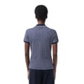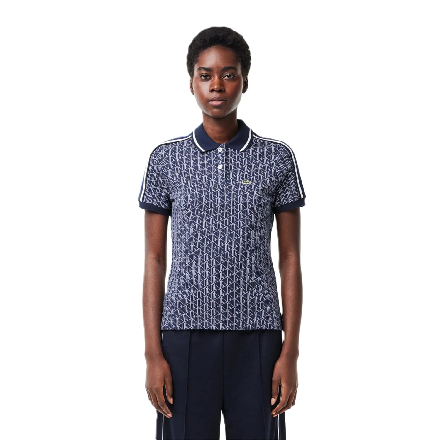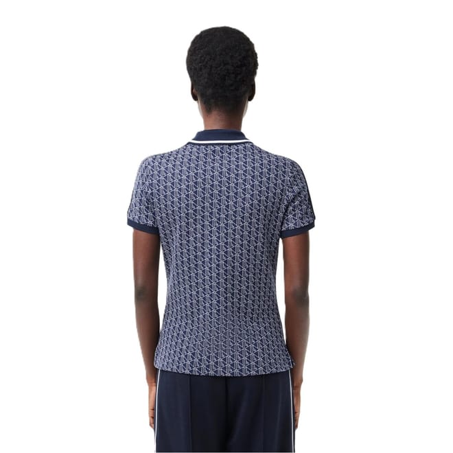 This Lacoste top from the semi-formal collection features a geometric pattern and a polo collar. It has short sleeves with ribbed cuffs and a regular fit. The button closure adds a classic touch, while the logo embellishment provides a subtle brand detail. -