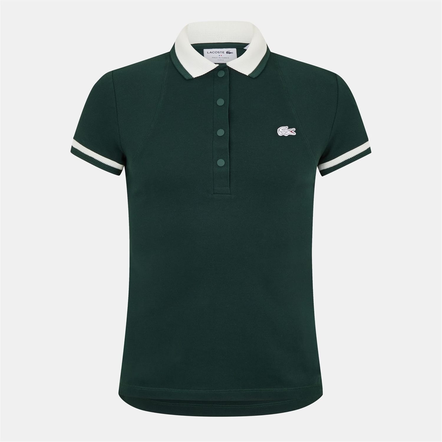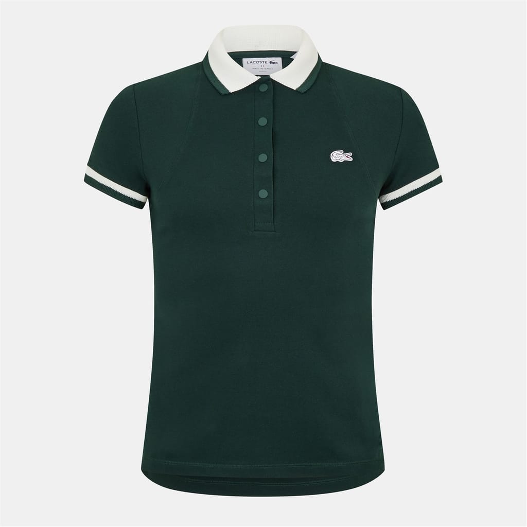 This Lacoste top from the semi-formal collection features a polo collar and short sleeves. It has a button closure and a regular fit, complemented by a ribbed cuff. The solid pattern is enhanced by a subtle logo and crocodile print, adding a touch of elegance to this versatile piece. -