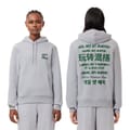 This Lacoste top features a hooded design with a drawstring closure, offering a comfortable regular fit. The long sleeves are complemented by ribbed cuffs, adding a touch of style. Adorned with a graphic print and logo lettering, this top is a perfect blend of casual and trendy. -