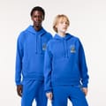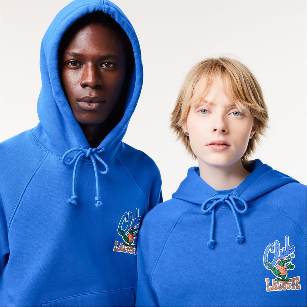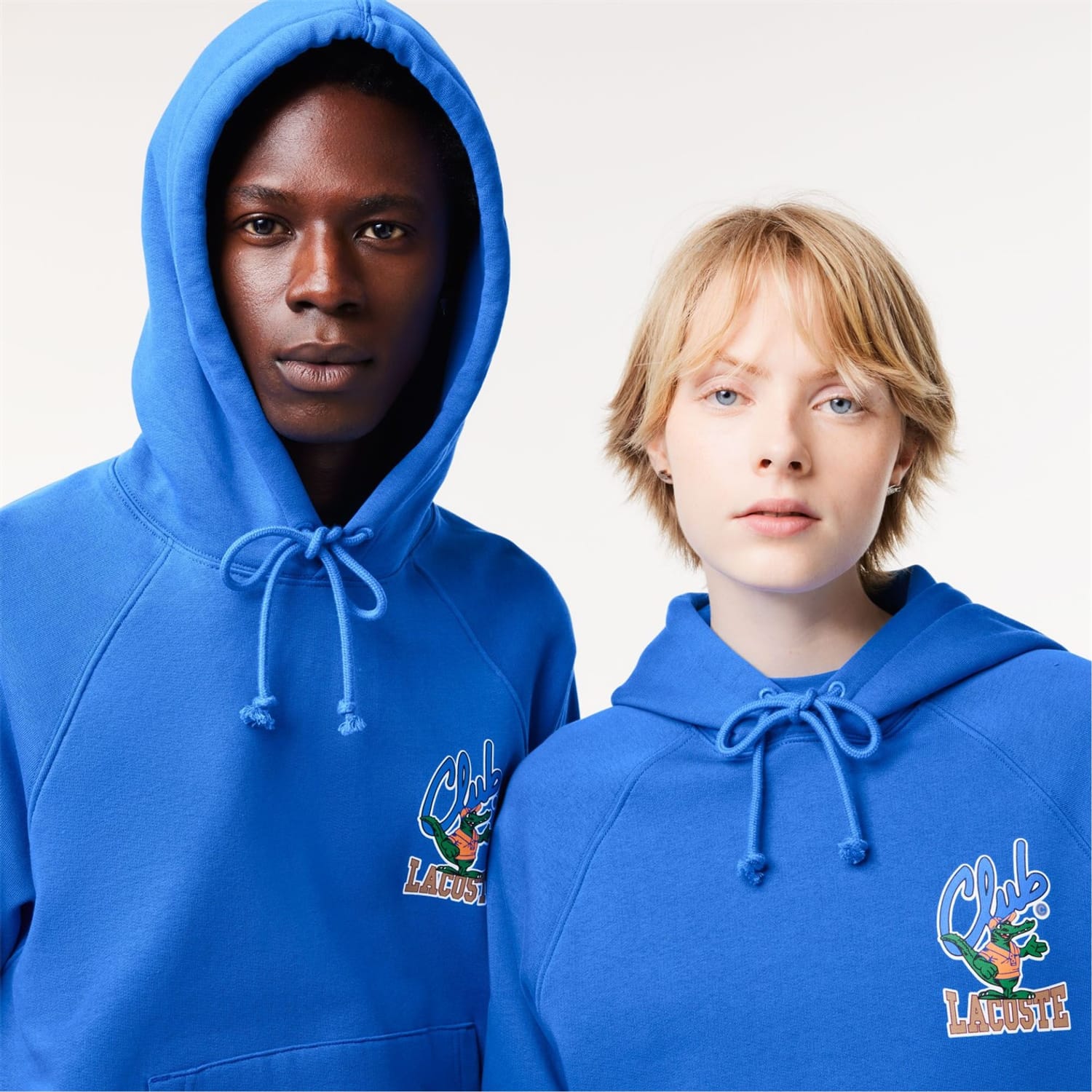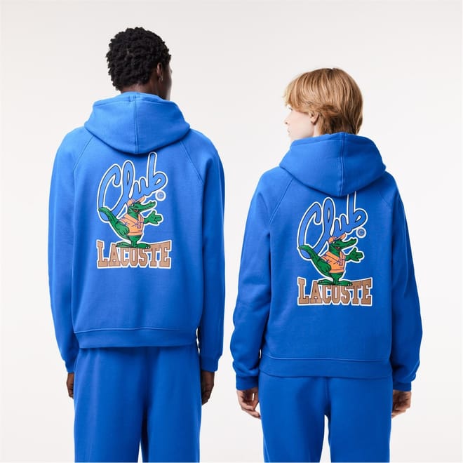 This Lacoste top features a hooded neck and a relaxed fit, perfect for casual wear. The long raglan sleeves with ribbed cuffs add comfort and style. Embellished with an embroidered logo and a distinctive crocodile print, this top is a standout piece in any wardrobe. The drawstring closure ensures a snug fit, while the graphic print adds a modern touch. -