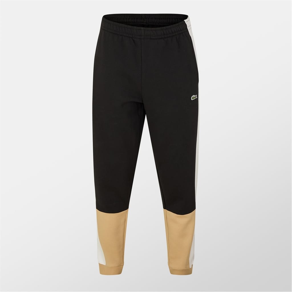 Lacoste joggers feature a color block design with an elasticated waistband for comfort. The cuffed leg adds a modern touch, while the logo embellishment highlights the brand's signature style. Perfect for casual collections, these joggers offer a blend of style and functionality. -