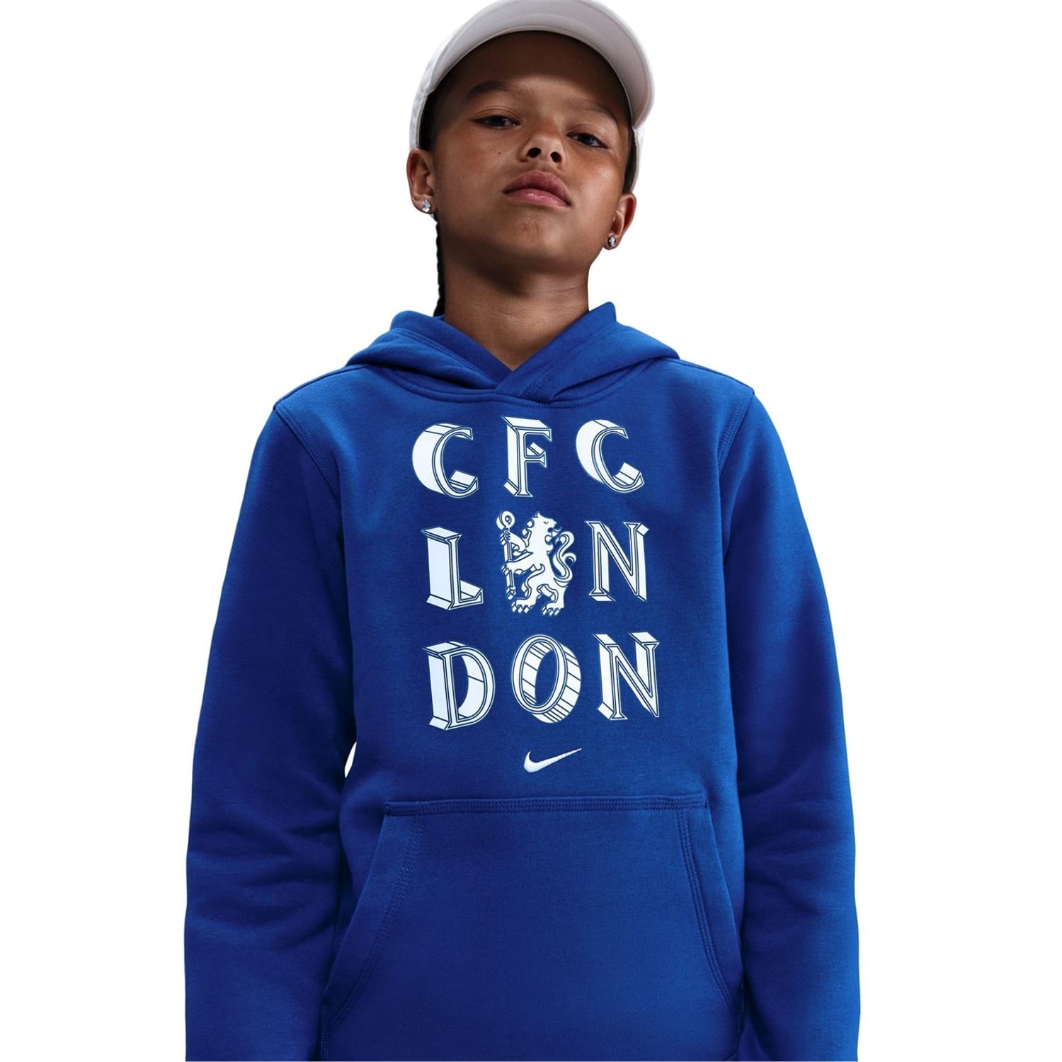 Freshen up your youngsters athletic attire with the Nike Chelsea Club Hoodie. Featuring the iconic Swoosh logo for a mark of sporty style and performance. Whether they're cheering from the stands or having a kickabout with friends, this football hoodie is the perfect companion.
