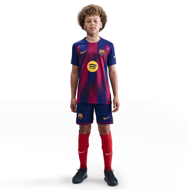 Let them show their Barça pride with the Nike Barcelona Home Shirt 2025 2026 for Juniors. Featuring iconic, energetic accents, it’s built with Dri-FIT technology to help keep them comfortable as they play or support their team. Finished with the legendary club crest and Nike Swoosh. Perfect for match days, training with friends, or cheering from the stands.