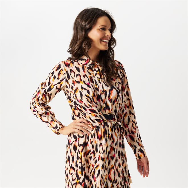 Radiate confidence with the Tie Shirt Dress by Biba, a brand renowned for its quality, patterns, and versatile designs. Adorned with gold-toned hardware exuding glamour. From upscale galas to celebratory dinners, this dress is the perfect piece.