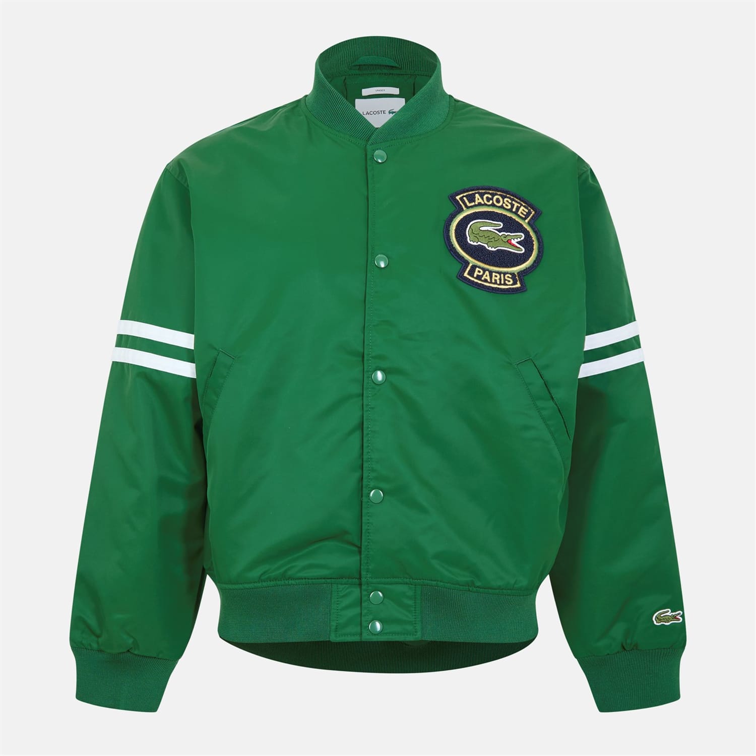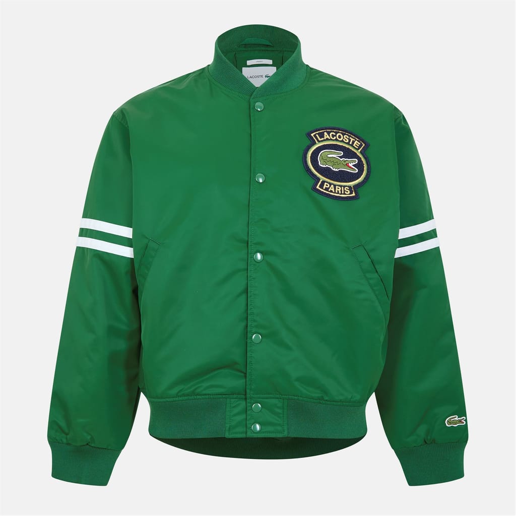 Introducing the Lacoste Bomber Jacket, a premium wardrobe staple that seamlessly combines style and functionality. Crafted using a sleek nylon exterior complemented by lightweight padding on the inside. The unique sleeve tipping detail adds a touch of modern elegance, while the snap buttons provide easy and convenient closure. Adorning the chest is the iconic Lacoste Crocodile Paris embroidery, showcasing the brand's timeless heritage. Offering two side pockets this jacket fuses fashion with function boasting a practical edge that allows you to keep your small essentials close and accessible. Designed for various occasions, from casual outings to stylish events, the Lacoste Bomber Jacket effortlessly elevates any ensemble. -