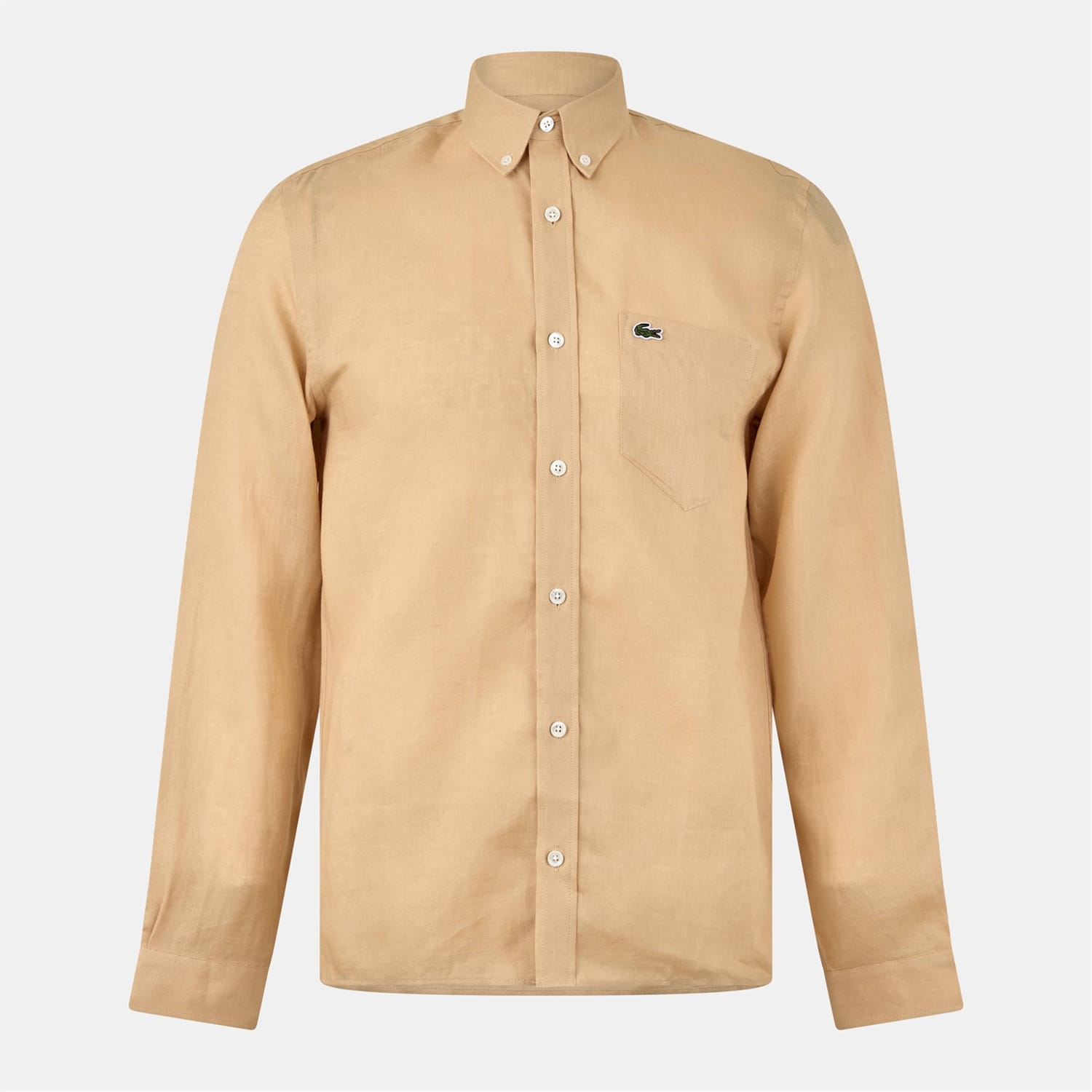 - Add a touch of sophistication and style to your wardrobe with this stylish Long Sleeve Shirt from Lacoste. Perfect for the more formal occasions or for the office, this shirt is constructed in linen and comes in a regular fitting, straight cut, long sleeved design. Highlighting a classic shirt collar design, easily and neatly fastened by a full frontal mother of pearl button closure. With a stylish chest pocket, this shirt is perfect whatever the temperature with its hypoallergenic properties it stays cool in the summer and warm for winter. This simple yet fashionable shirt is finished in a solid block white colouring and completed with the iconic croc logo which finishes off the look with a sophisticated touch. Wash at 40 degrees, do not tumble dry, normal dry clean. -