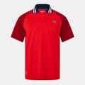 This Lacoste top from the semi-formal collection features a polo collar and a button closure. The short raglan sleeves and regular fit offer a comfortable wear. The color block pattern adds a stylish touch, while the iconic crocodile logo embellishment completes the look. -
