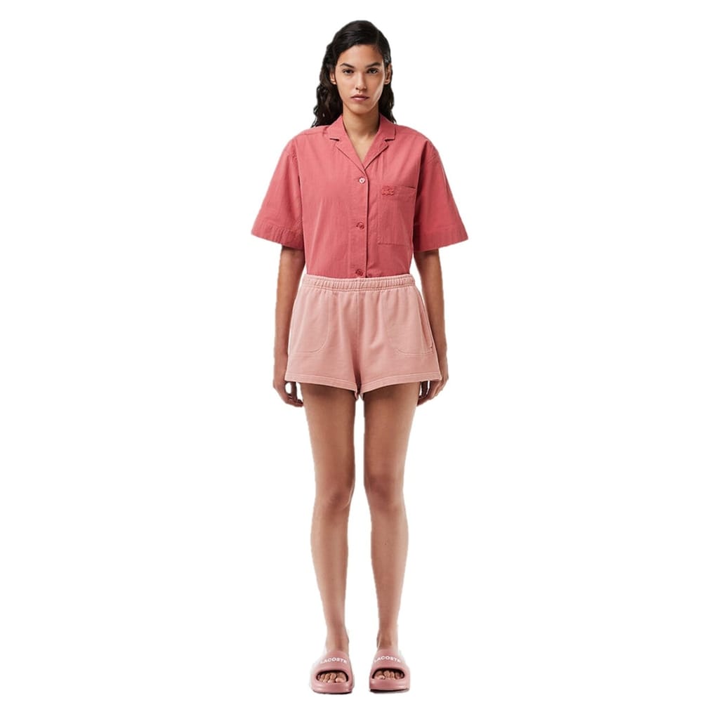Lacoste solid sweat shorts feature a drawstring closure and an elasticated waistband for a comfortable fit. These casual shorts are designed with practical pockets, making them a versatile addition to your wardrobe. -