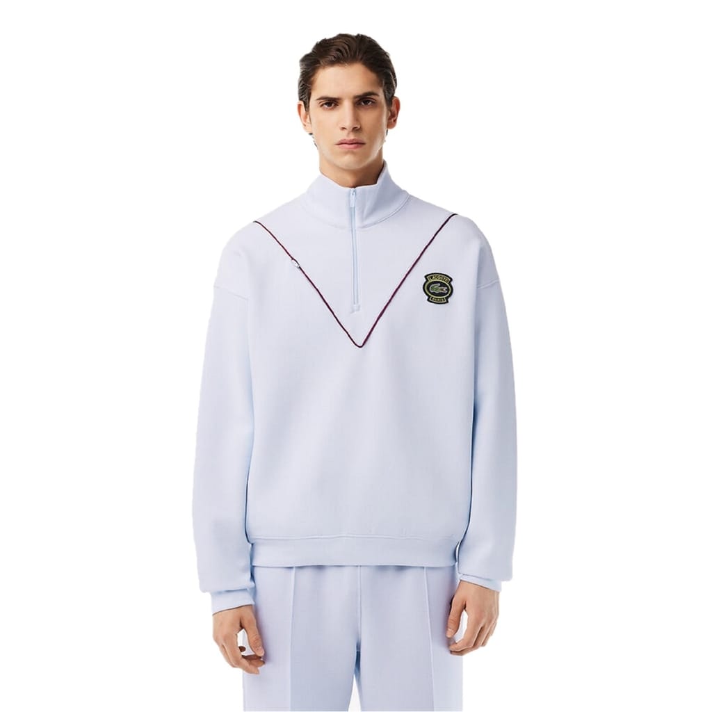 - Crafted from soft cotton fleece, this fleece top is constructed with a high neckline and 1/4 zip closure to add a touch of refinement, allowing you to adjust the level of warmth as desired. Featuring long sleeves and dropped shoulders, this piece offers a relaxed and comfortable fit while also flattering any body type. The diagonal zipped chest pocket provides convenient storage for your essentials, while the pipe detailing in a v shape to the front adds a subtle touch of modern sophistication. The Lacoste brand logo badge, embroidered on the chest, showcases the brand's exquisite attention to detail and commitment to quality. Perfect for a leisurely weekend stroll or a casual outing, the Heritage 1/4 Zip Fleece adds a touch of style to any outfit.