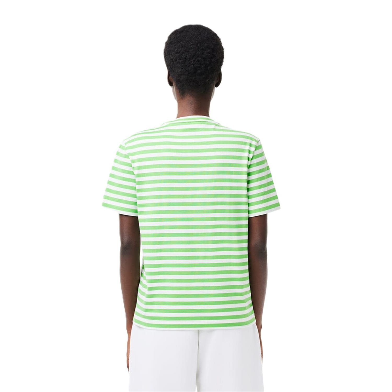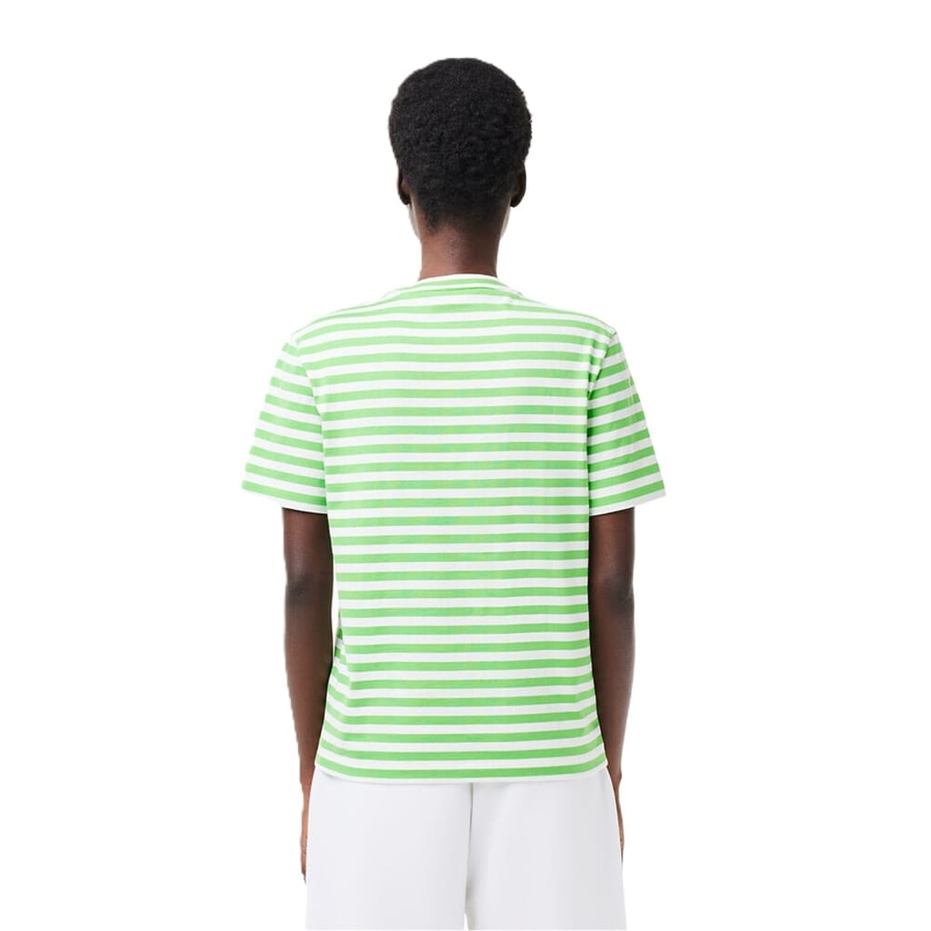 Elevate your casual ensemble with the Striped T-Shirt from Lacoste, a testament to the brand's commitment to quality and refined style. Whether you are going on a casual outing or simply lounging around, this t-shirt is perfect for any occasion. Crafted from a thick 100% cotton jersey, this T-shirt offers a luxurious touch against the skin, while its loose fit and comfortable cut ensures long-lasting comfort throughout the day. The lowered shoulders add a contemporary edge, making a fashion-forward statement. Designed with a classically striped print, this t-shirt provides a nautical charm, perfect for embracing a carefree yet sophisticated look. The ribbed collar, adorned with a band in signature Lacoste colours, elevates the design to new heights of premium style. To complete the design, the iconic embroidered crocodile sits proudly on the chest as a symbol of Lacoste's rich heritage and unwavering commitment to excellence. Machine washable, follow care instructions.