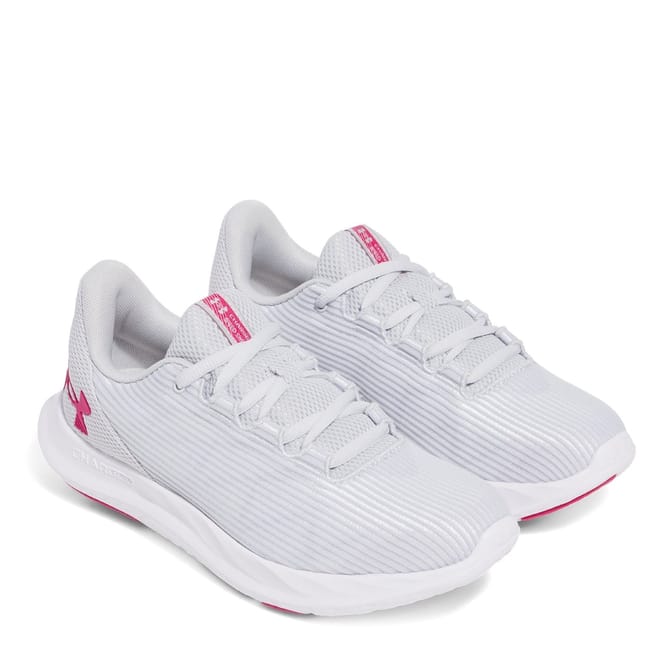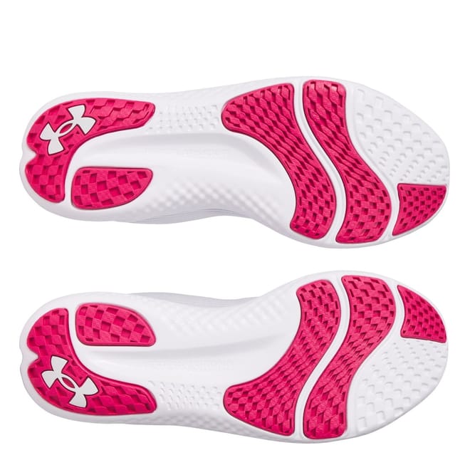 Built insanely light and supportive so nothing will hold you back the second coach blows that whistle. Paired with soft, springy UA HOVR™ cushioning that pushes you forward—you'll crush those run drills. Lightweight, translucent mesh upper with sublimated speed graphic is super-breathable. Deluxe Comfort System sockliner molds to your foot for ultimate step-in comfort. Charged Cushioning® midsole provides all day comfort with responsiveness & durability. Durable rubber outsole provides traction & durability with flexibility where you need it for toe-off -