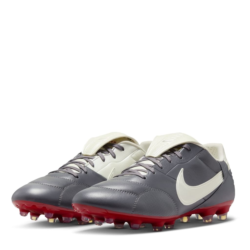 Make every shot with precision with these Premier 3 Firm Ground Football Boots from Nike. Crafted with a premium leather upper and a fold-over tongue featuring a slick cut line, these boots are built to elevate your game. The lace-up fastening and cushioned ankle collar provide a secure and comfortable fit, whilst the classic round toe and conical studs on the sole deliver top-tier agility and traction on firm ground. Perfect for dominating the field with power and precision.