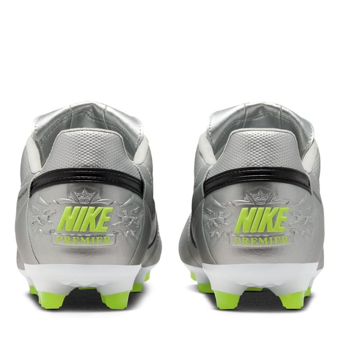 - Emblazoned with the iconic Nike Swoosh branding on the sides, tongue, and heel, these boots are perfect for dominating the field. Lace-up the Premier 3 Firm Ground Football Boots and feel the rush of power and precision with every kick, tackle, and goal