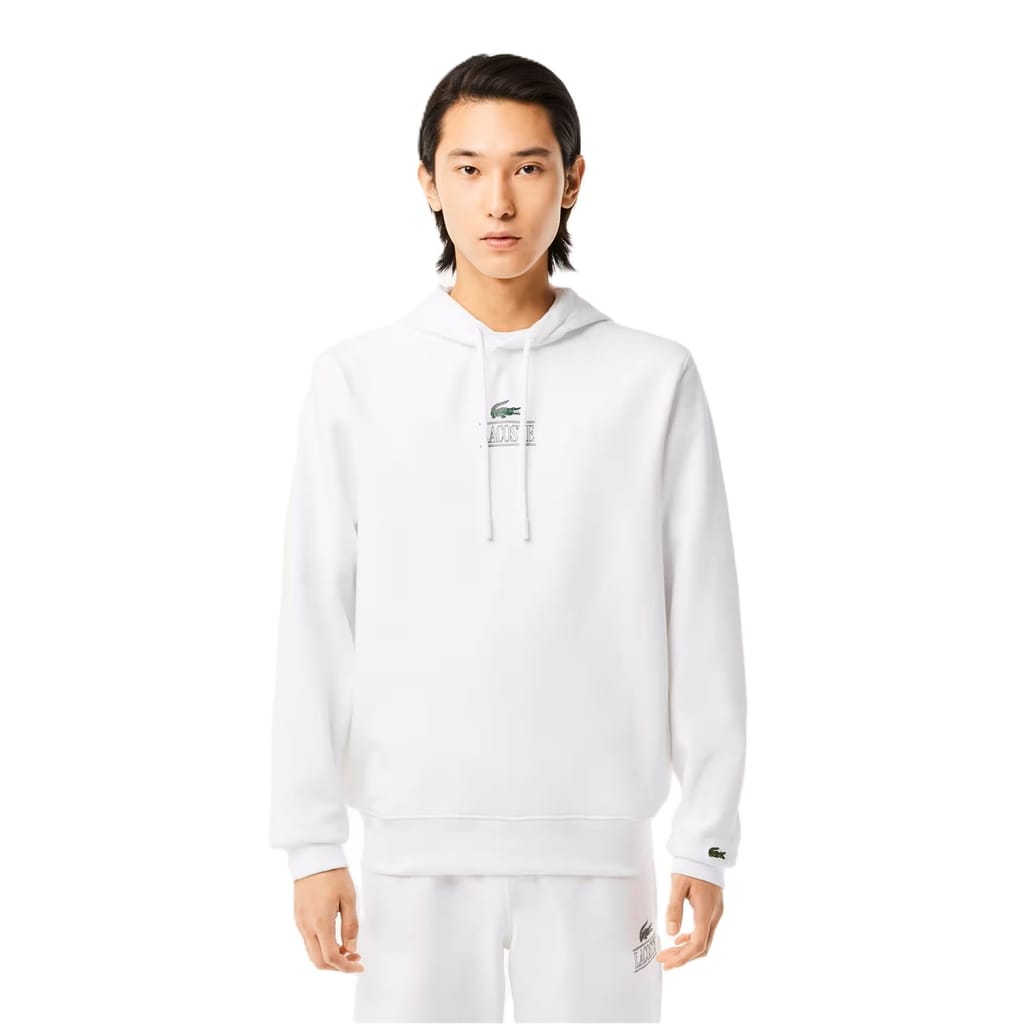 This Lacoste top features a hooded design with a drawstring closure, offering a regular fit. The long sleeves are complemented by ribbed cuffs, adding a touch of style. Adorned with Lacoste lettering and a graphic print, this top showcases the brand's logo, making it a distinctive choice for those who appreciate subtle branding. -
