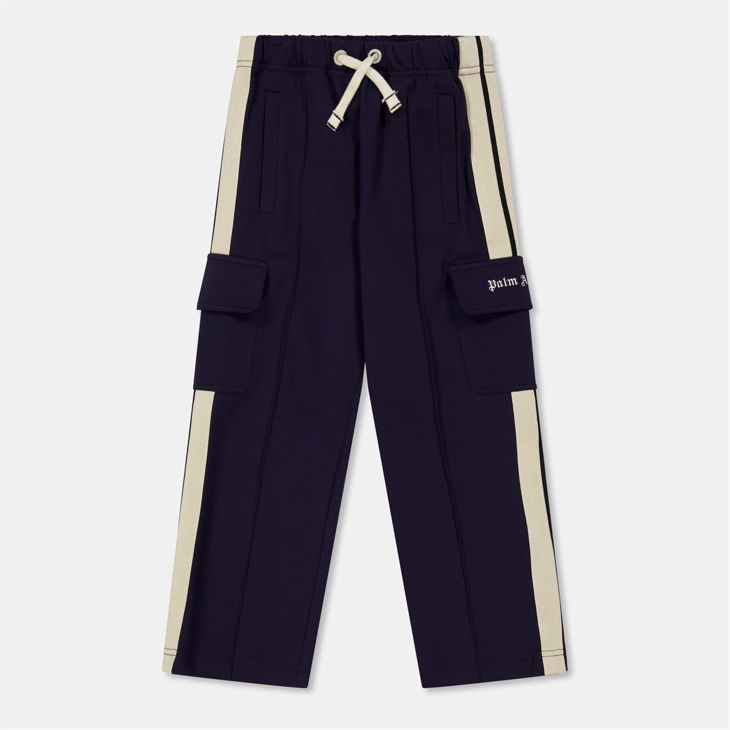 Palm Angels joggers feature a stylish logo and practical pockets, perfect for casual collections. The drawstring closure ensures a comfortable fit, making these joggers a versatile addition to your wardrobe. -