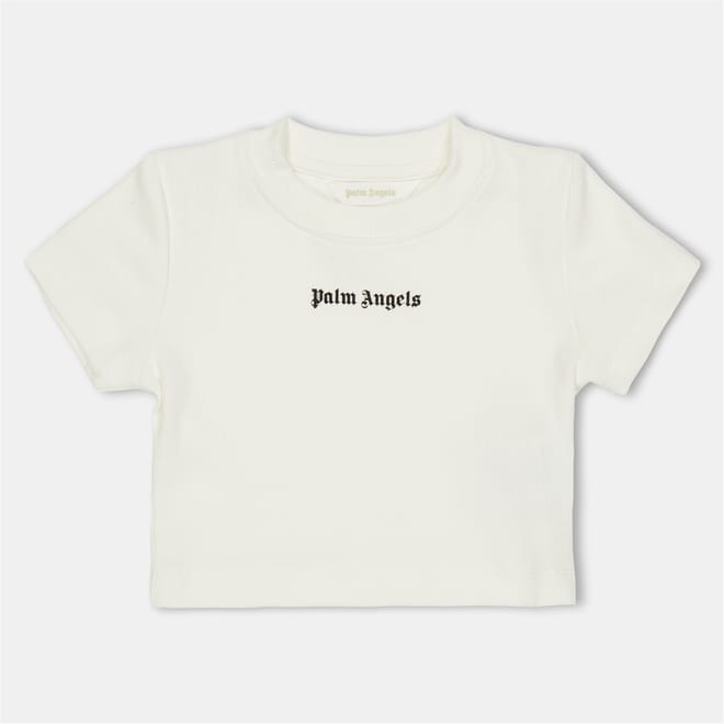 This Palm Angels cropped top features a crew neck and short sleeves, offering a regular fit. The solid pattern is complemented by a distinctive logo embellishment, adding a touch of brand identity to the design. -
