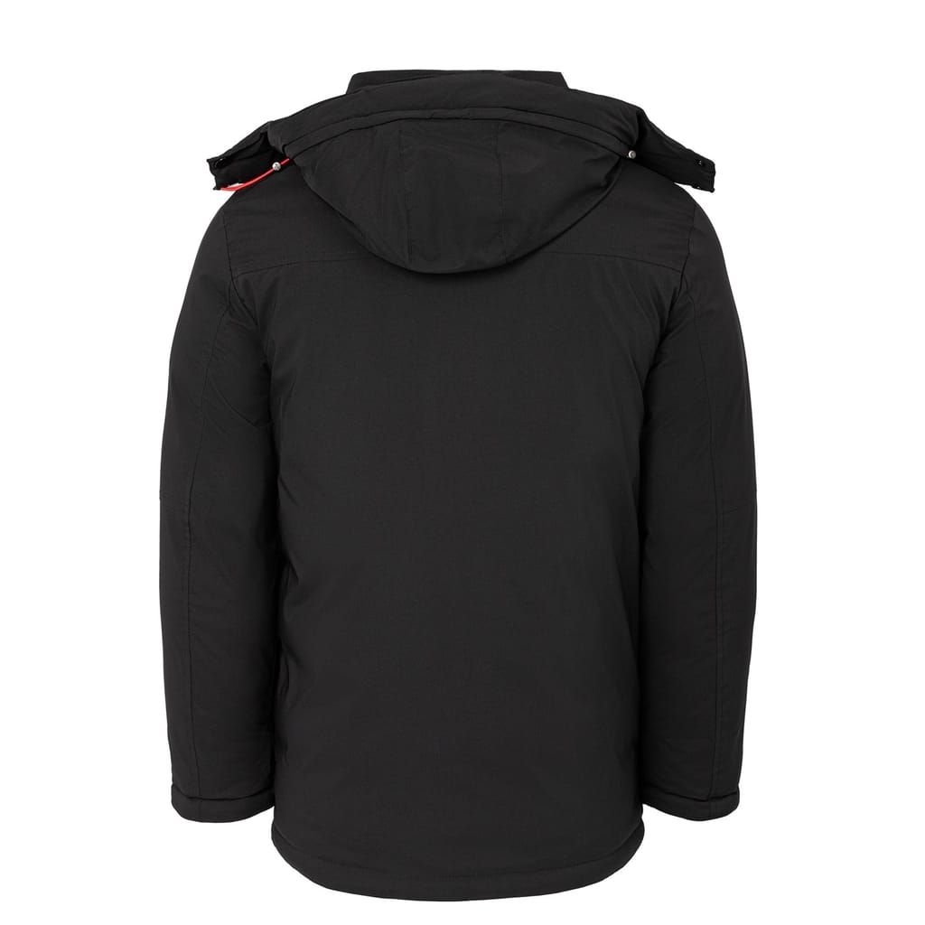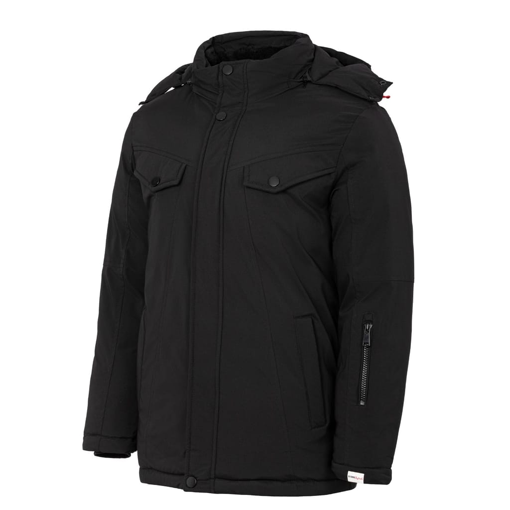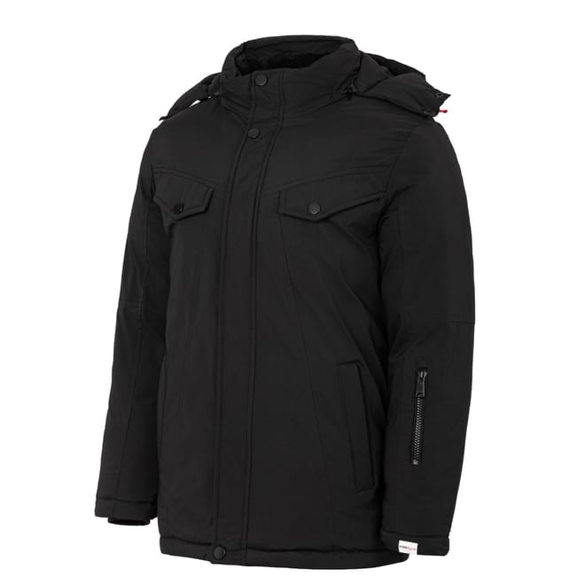The Lee Cooper puffer jacket is designed for comfort and style. Featuring a hooded neck and a regular fit, this solid-coloured jacket is padded for warmth. It includes a zipper and snap button closure, ribbed cuffs, and a straight hem. Embellished with a logo and pockets, it combines practicality with a sleek look. -