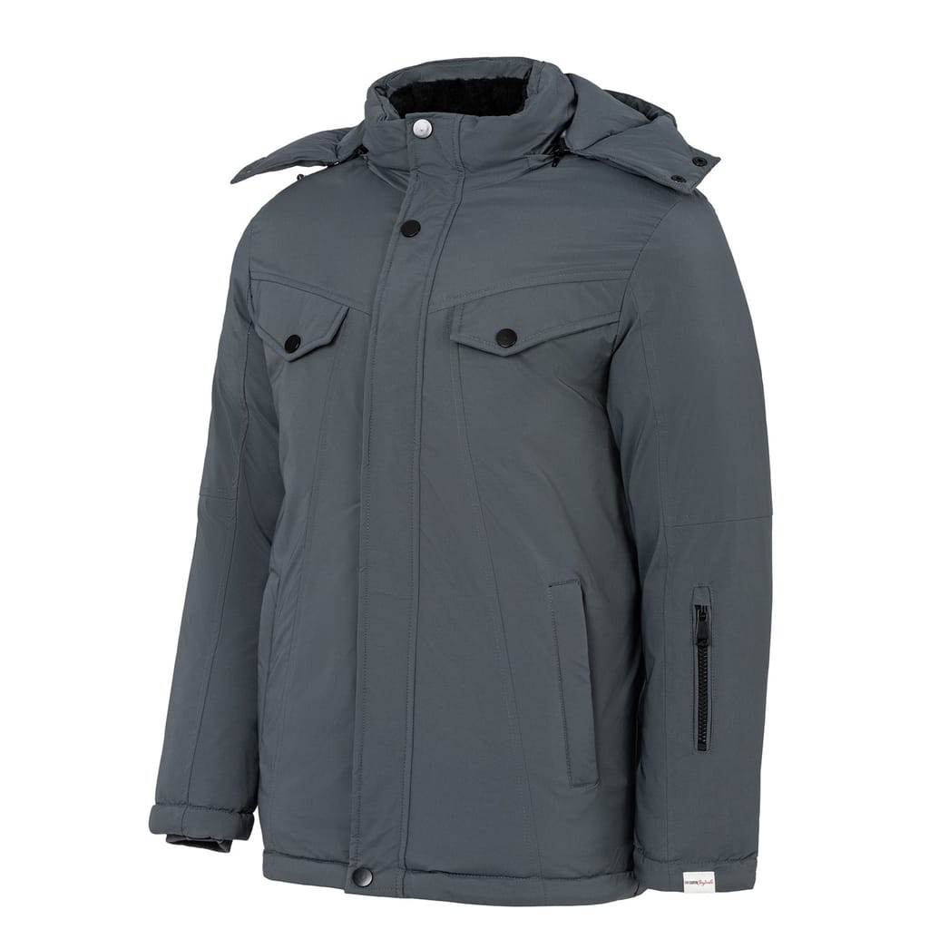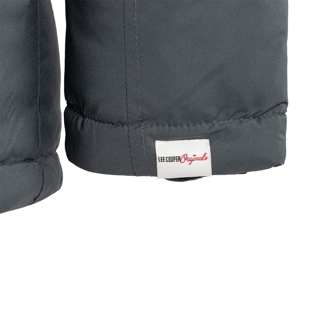 Stay warm and stylish with the Lee Cooper puffer jacket. This padded jacket features a hooded neckline and a regular fit, ensuring comfort and protection against the elements. The solid pattern is complemented by a snap button and zipper closure, while ribbed cuffs add a touch of detail. Embellished with a logo and practical pockets, this jacket is a versatile addition to your wardrobe. -