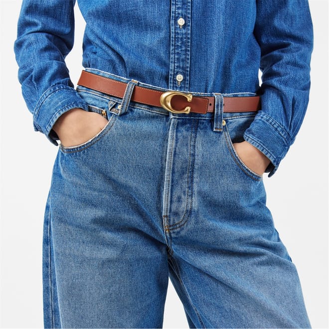 Crafted from smooth leather, the Coach 25mm Signature Buckle Reversible Belt offers two stylish looks in one with its versatile design. Featuring the iconic Signature buckle, this skinny belt adds a touch of heritage elegance to any outfit. Perfect for dressing up workwear or adding polish to casual looks, it’s a timeless accessory for every occasion.