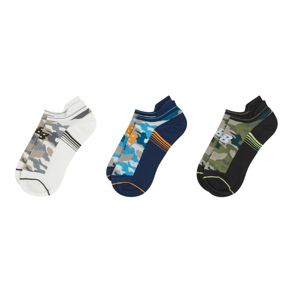 Discover the New Balance no-show socks, designed for those who prefer a discreet trainer sock style. Featuring a camo pattern, these socks offer a unique touch while maintaining functionality. The New Balance logo embellishment adds a subtle brand detail, making these socks a stylish and practical choice for your footwear collection. -