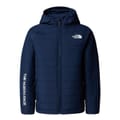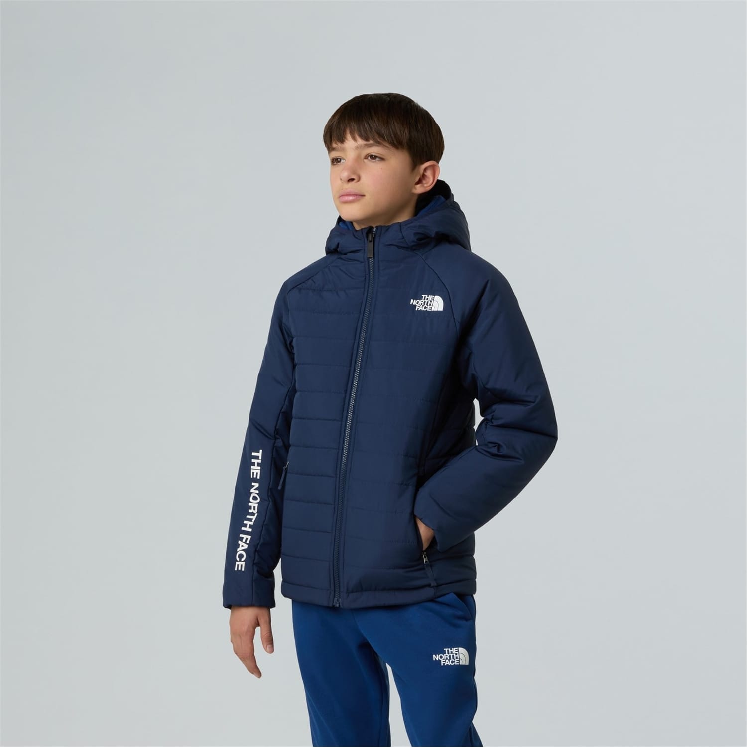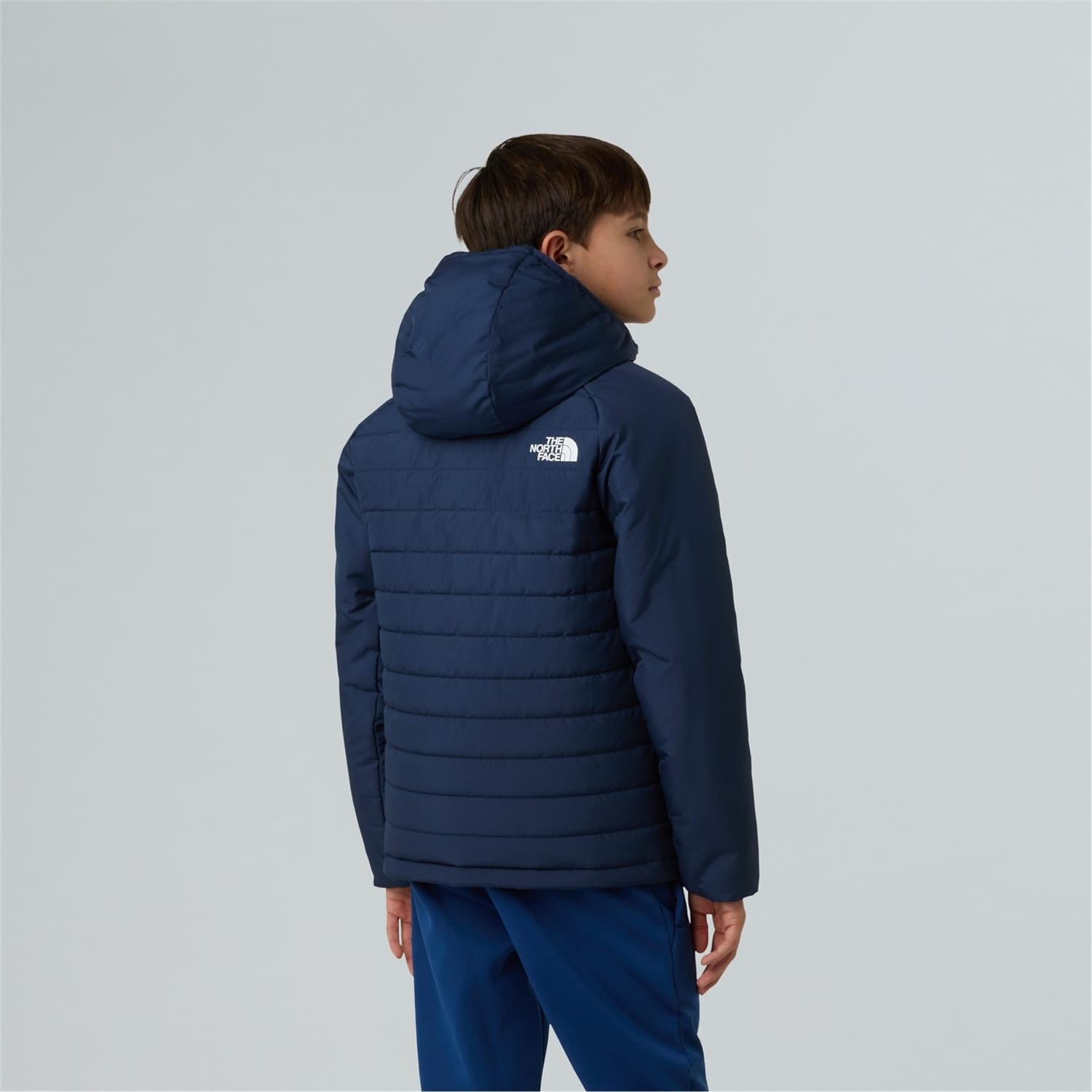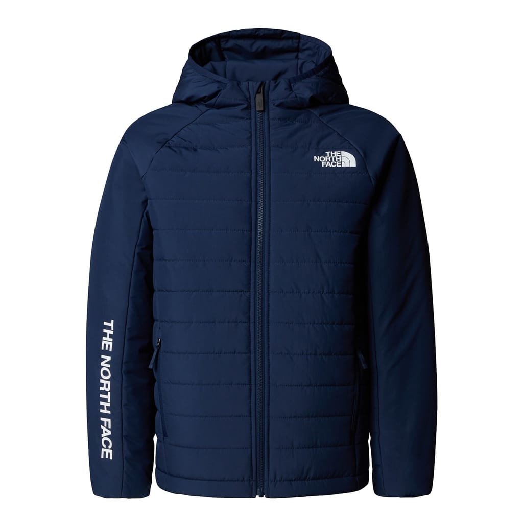 The North Face Summit puffer jacket for kids offers a regular fit with a short length, perfect for keeping warm. Featuring a hooded neckline and a zipper closure, this solid pattern jacket is both functional and stylish. The iconic logo embellishment adds a touch of brand recognition to this essential outerwear piece. -