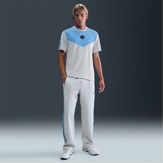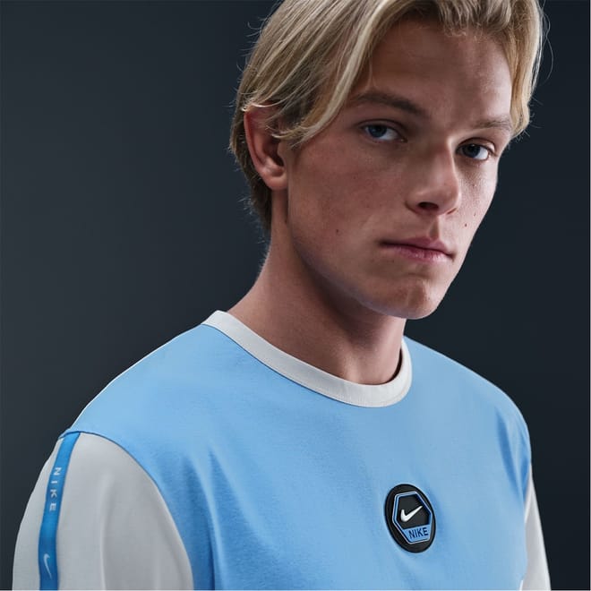 This Nike top features a regular fit and short sleeves, perfect for casual wear. The crew neck design is complemented by a stylish colour block pattern. A subtle logo embellishment adds a touch of brand identity to this versatile piece. -